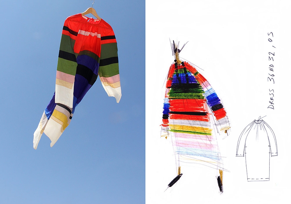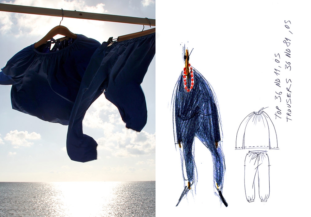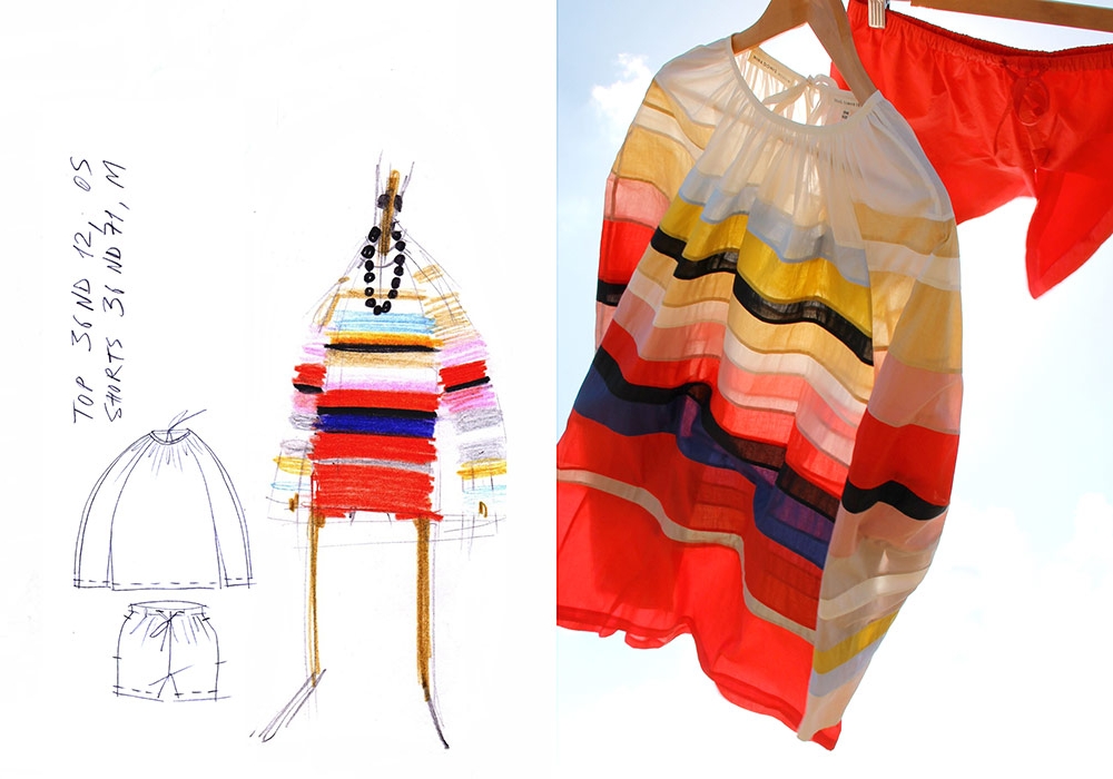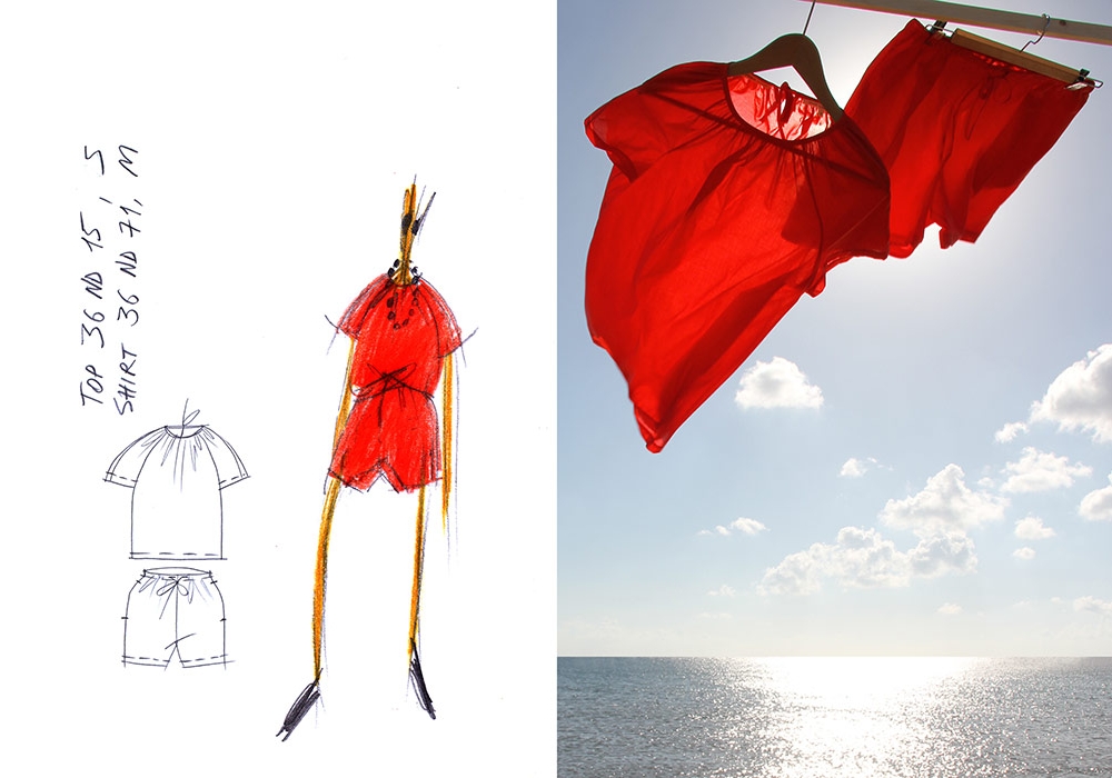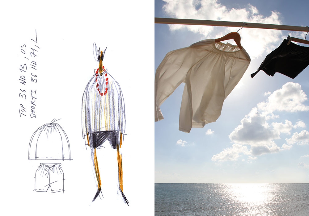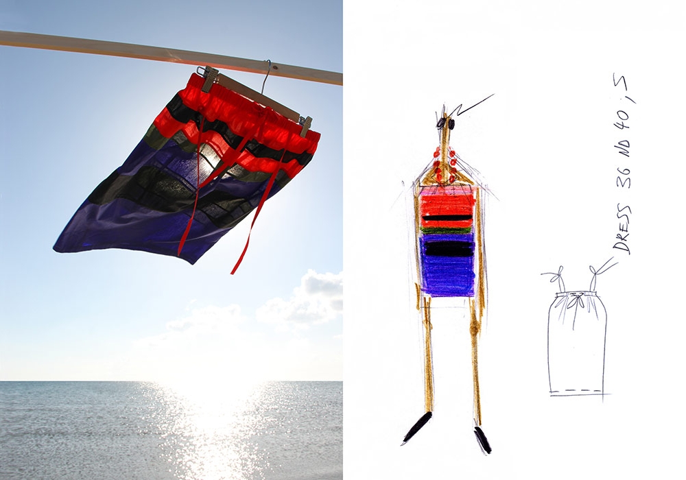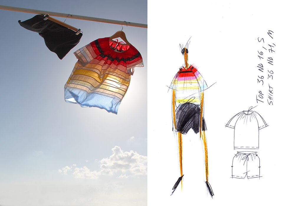Как обычно, к новому лукбуку Нина Неретина и Донис Пупис подготовили мудборд, который объясняет, какие образы держали в голове дизайнеры во время работы над коллекцией. Если в прошлый раз отправными точками были эмалированная посуда советской эпохи, русская зима, праздничное настроение, девочки-снежинки и новогодняя елка, то для весны и лета референсами оказались пляжи, солнечные зонты, безоблачное небо, полосатые купальники, работы Луизы Буржуа, Дэвида Хокни, Фриды Кало. Чем еще вдохновлялись художники, можно попробовать разгадать на коллаже ниже.