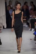 Питер Коппинг, конечно, не так буквален, как его итальянские коллеги. В его коллекции есть несколько очевидных образов, например длинное платье с оборками, сверху отороченное черным кружевом и щедро усыпанное гвоздиками, а есть и те, которые к традиционному взгляду на ту же тему имеют отношение весьма опосредованное. Например, в костюме из рубиново-красной блузы и сложноскроенной темной юбки или в паре красный топ с камнями на плечах + юбка-карандаш трудно с первого взгляда узнать отсылку к наряду матадора. Но это, тем не менее, именно они.