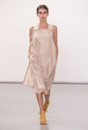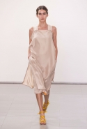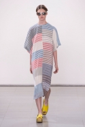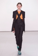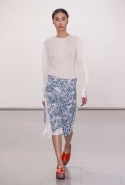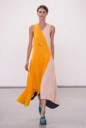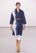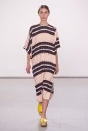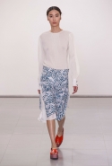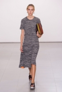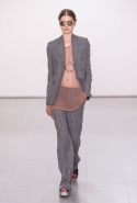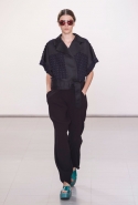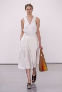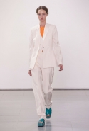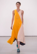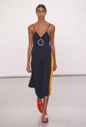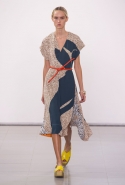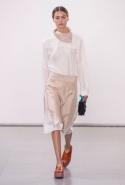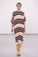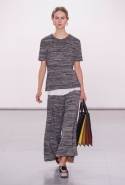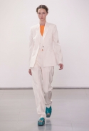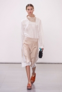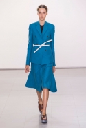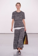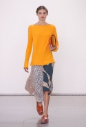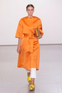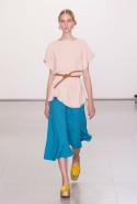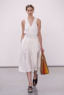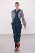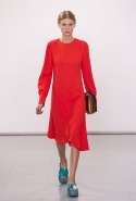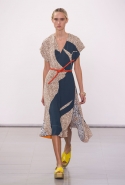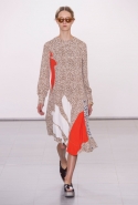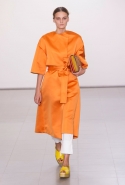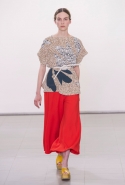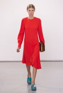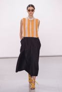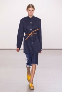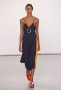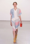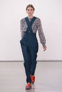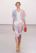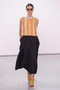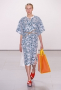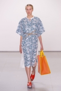 Оранжевый, красный, синий (не ультрамарин и не лазурь, а что-то с отзвуком цвета морской волны), алый, канареечно-желтый — этими сочными тонами оперируют дизайнеры из команды Paul Smith. Разбавляют их принты, похожие на телевизионные помехи: иногда на них накладываются куски однотонной ткани, напоминающие вырезки цветной бумаги, иногда помехи разных видов переплетаются между собой. Именно в этих сочетаниях, кажется, и копится та невероятная энергия, которую несет в себе весенняя коллекция марки. А подчеркивают ее вещи очень простых, очищенных от лишних деталей силуэтов: широкие кюлоты, платья на лямках, топы-кимоно, перетянутые толстыми шнурками, минималистичные юбки и брюки и, главное, комбинезоны с широкими, перекрещенными на груди лямками.