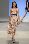 Клетка, пижамы и пастель — так мы бы описали весеннюю коллекцию Thakoon, если описать ее попросили бы всего в трех словах. Этих трех слов было бы, в принципе, вполне достаточно, если бы до показа Такун Паничгул не объявил о слиянии двух своих линий: основной и «младшей», Thakoon Addition. Может быть, из-за этого слияния большая часть вещей и выглядят такими простыми, что становится почти скучно — для того чтобы найти баланс, вероятно, требуется время.