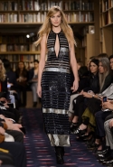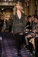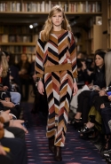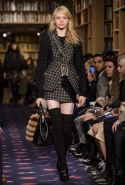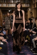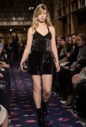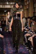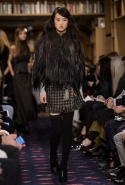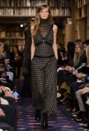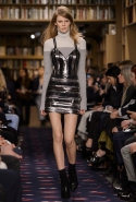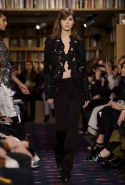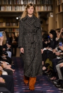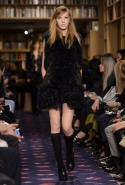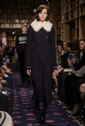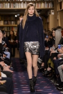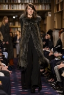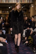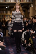 Осенне-зимний показ команда Sonia Rykiel решила провести в магазине марки на Сен-Жермен-де-Пре — ради шоу в стенах бутика выстроили настоящую библиотеку с полками от пола до потолка и 50 тысячами книг. Но никакой книжной пыли в воздухе не было: коллекция получилась очень свежей и, несмотря на выбор в пользу исключительно темных цветов, яркой. Вещи «библиотечные», вроде закрытых брючных костюмов, твидовых серых пальто и длинных платьев, соседствовали на подиуме с куда более легкомысленными. Крохотные мини-юбки с высокими черными чулками, парадный и будто бы закрытый комбинезон с вырезом, обнажающим кожу до самой талии, тоненькие обтягивающие свитера и платья-комбинации — выглядит все это очень кокетливо, хотя используемые материалы (основой коллекции стал бархат темных оттенков) и мешают предъявить обвинение в откровенной непристойности.