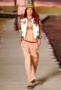 В прошлый раз Хилфигер, взявшись за школьную ретроформу, болельщиц и американский футбол, пространство для показа перестроил в стадион. А до этого воспроизвел сцену с обложки альбома St Pepper's Lonely Hearts Club группы The Beatles во всем ее великолепии. Теперь же, когда зашла речь о Island Girls и райских наслаждениях, команде Tommy Hilfiger пришлось выстроить тот самый чудо-остров, жительницами которого на один вечер и стали все участвовавшие в показе модели. А ходили они вместо подиума по деревянным мосткам — посмотреть, как именно все это было, еще не поздно и сейчас.