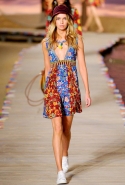 С той же буквальностью развивается тема и в одежде. С чем у вас ассоциируется отдых на воображаемом или реальном чудо-острове? Попробуем угадать: наверняка это будут яркие бикини, легкие платья и пляжные туники, майки-сетки и ожерелья из чего-то выдаваемого за зубы акулы. И на подиуме мы — вот сюрприз! — видим в точности то же самое. И, конечно же, в самых ярких, жизнерадостных и веселых оттенках. Все вещи раскрашены в полоску или разрисованы тропическими цветами самых разных форм и размеров, а купальники связаны из разноцветных ниток со всего радужного спектра и даже больше. Венчают эту веселую пестроту такие же красочные панамки. А самыми смешными вещами сезона можно, без сомнений, признать свитера с обезьянками, крабами и тиграми — любой внутренний ребенок от такого придет в восторг.