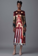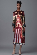 Необычно выглядит то, что некоторые из этих узоров, которыми расписана заметная часть коллекции, совсем не вызывают ассоциаций с Японией. И по цветовой гамме, и по динамичности простых линий они куда больше ассоциируются с Африкой, которая уже была темой весенне-летней коллекции 2016 года. Таким не самым очевидным образом Мария Грация Кьюри и Пьерпаоло Пиччоли связывают между собой сезоны. Другие же рисунки, с тонкими и очень изящными линиями, напоминают традиционные японские гравюры. Даже выбранные дизайнерами Valentino сюжеты для них как раз привычны: гора Фудзияма (в коллекции — извергающийся вулкан), ветви цветущей сакуры, кружащиеся в небе журавли, завитки волн.