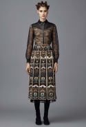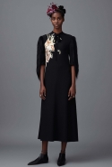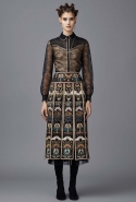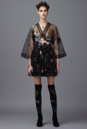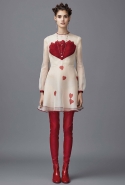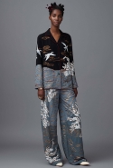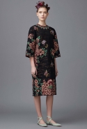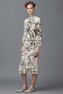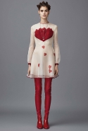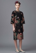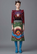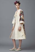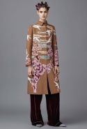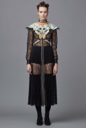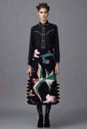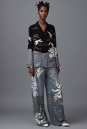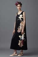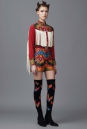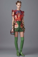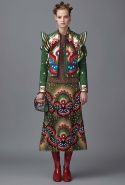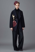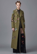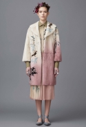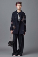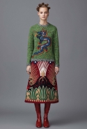 Дуэт креативных директоров Valentino остается верен своим принципам — основных выделим два. Во-первых, если уж делаешь коллекцию, показывай не 15 образов и не 30, а как минимум 70. Даже если это межсезонье, даже если до премьеры haute couture всего две недели — расслабляться нельзя. Во-вторых, все должно быть нарядно, отделки — как можно больше, а некоторые ее элементы должны кочевать из сезона в сезон, связывая их. Таким символом стала вышитая бабочка, которая порхает по всем коллекциям итальянского дома, независимо от главной темы каждой из них. Например, в этот раз, после Африки, Пьерпаоло Пиччоли и Мария Грация Кьюри решили повернуться лицом к Японии. И на вещах из их предосенней коллекции поселились японские драконы, длинноногие журавли и странное существо, похожее на порождение фантазии Хаяо Миядзаки. Но бабочки все-таки тоже вторглись в этот этнографический уголок и стали одним из повторяющихся мотивов: они появляются не только в реалистичных аппликациях, но и в графичных, достаточно абстрактных узорах.