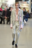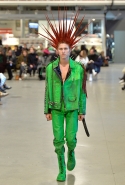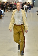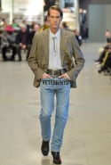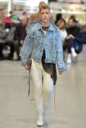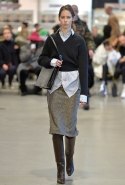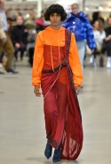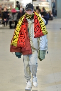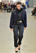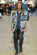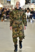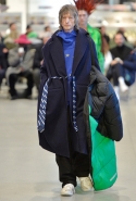 Описывать каждую модель не имеет смысла: это те люди, которых можно увидеть на любой улице среднестатистического европейского города. Более неоднородной коллекции мир еще не видел. Таков замысел, но Vetements были бы не Vetements, если бы не подсунули в каждую модель какую-никакую, а хитрую свинью. Солдат НАТО в военной униформе носит на спине слоган «Он просто солдатик, он ни в чем не виноват», длинноволосый металлист одет в квадратную оверсайз джинсовую жилетку (невольно представляешь в ней Канье Уэста), а в роли офисной леди, спешащей по делам, выступила стилист Vetements Лотта Волкова.