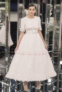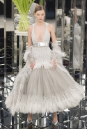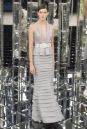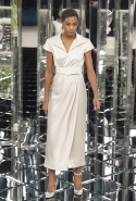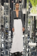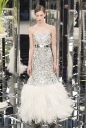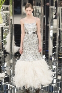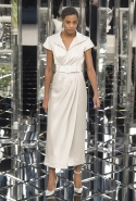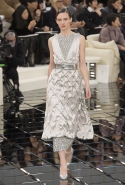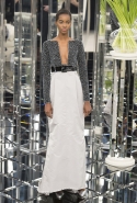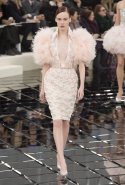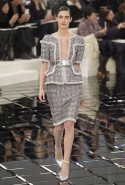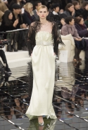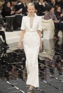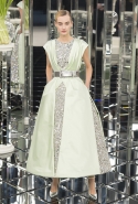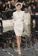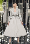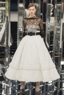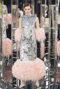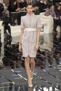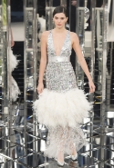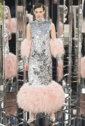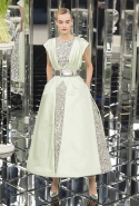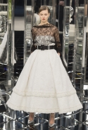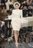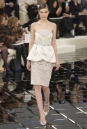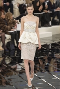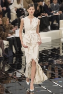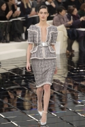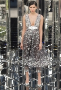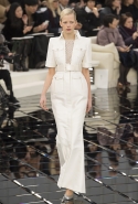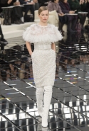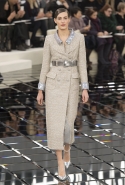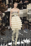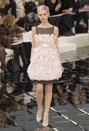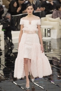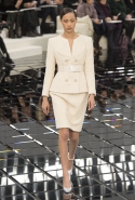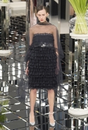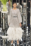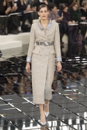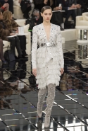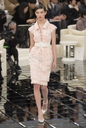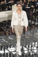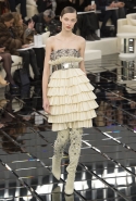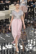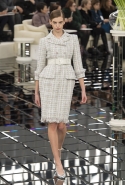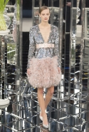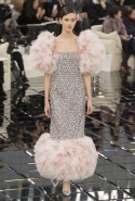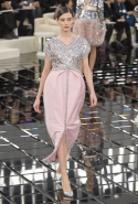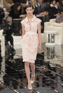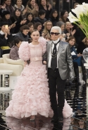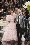 Безумство женственности — от нежнейших твидовых наборов с высокой талией и юбкой-тюльпаном до роскошных вечерних нарядов в перьях и пайетках. Юбочные костюмы подчеркнуты широкими поясами и глубокими декольте. За коктейльными образами следуют вечерние, вышивки из стекляруса, буфы, складки, оборки, перья и пайетки. Показ завершила новая муза Лагерфельда Лили-Роуз Депп в нежнейшем свадебном платье из розовой органзы. Гимн женственности и женщинам, которые вдохновляют Карла, а также призыв не быть по отношению к этим музам слишком строгими.