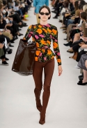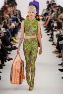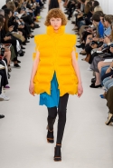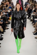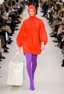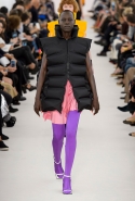 В новом сезоне мы увидели все те же платья-халаты с цветочными узорами расцветки «вырви глаз», огромные сумки-баулы из матовой и лакированной кожи, массивные дутые жилеты и пуховики, а также латексные плащи. Знакомыми выглядели блейзеры и куртки с очень широкими плечами, создающие силуэт дворецкого Ларча из семейки Аддамс.