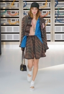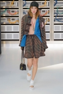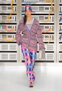 Помимо твида были и принты, напоминающие графику компьютерных игр, – неоновые полосы, хаотичные линии всех цветов и размеров и глитч-арт. Брюки-бананы и жакеты из лаковой кожи, стеганной цветными нитками, а также бейсболки (надетые набок) напоминали о 1980-х.