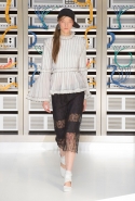 Каждый сезон Карл Лагерфельд проводит показ Chanel в отеле Grand Palais. Меняются лишь декорации и, обычно, это очень масштабная история. В этом сезоне на подиуме построили серверную комнату, хранилище блоков питания и проводов. Так Лагерфельд обозначил тему коллекции – «intimate technology» (буквально – личные технологии).