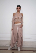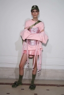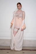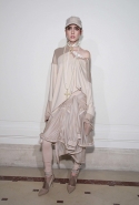 Если в прошлой коллекции были готические элементы и некая мрачность, то нынешняя – воздушная, пастельная и даже кокетливая. Все это благодаря огромному количеству лент и прозрачных тканей в преимущественно бледно-розовых тонах.