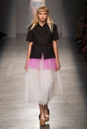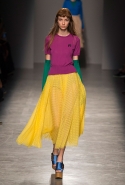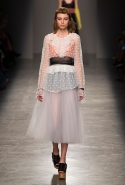 За четыре года в Rochas дизайнер выработал определенную эстетику. В новой коллекции есть все ее приметы: высокая линия талии, пышные многослойные юбки до середины икры, а также приглушенные пастельные оттенки, полупрозрачные ткани, оборки и банты, мелкий цветочный рисунок и обувь на неизменно высокой платформе. Одним словом, постоянство — признак не только качества, но и сформировавшегося стиля, а с этим у Дель Аквы проблем нет.