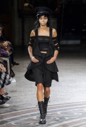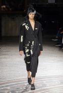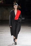 Структурность и деструктуризация – основные темы этой недели моды. Ямамото вернулся к своей любимой палитре (черный, белый, красный) и свободному крою. Длинные пальто с вырезами на груди, жакеты, распадающиеся на ремни, сложные конструкции, напоминающие фигурки оригами, из белой и черной ткани с чернильными пятнами – похоже дизайнер, как настоящий мастер, смог найти структуру в хаосе и порядок в беспорядке.