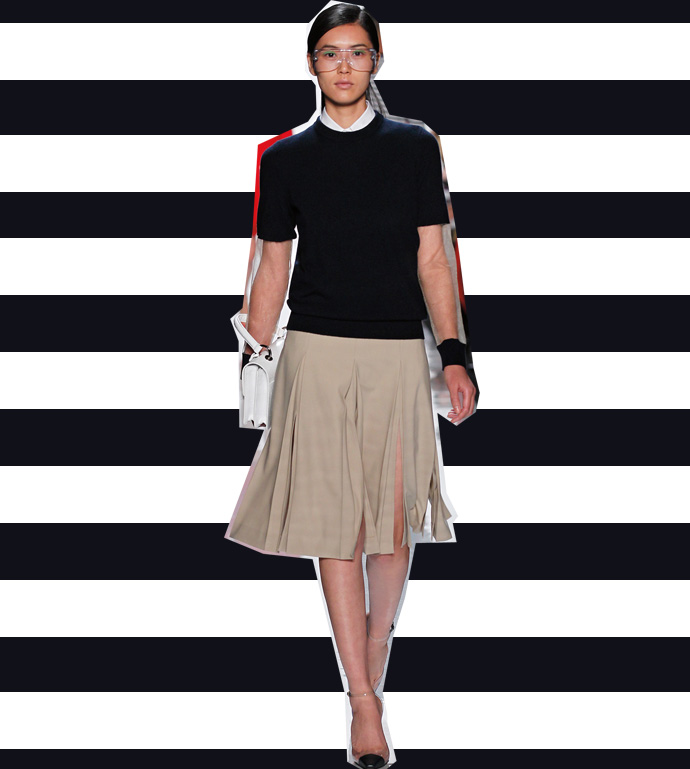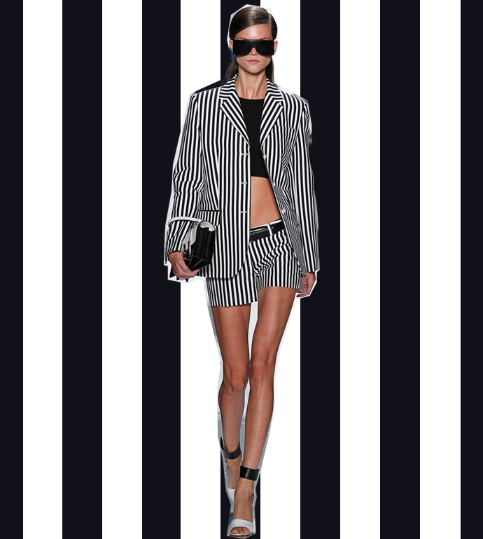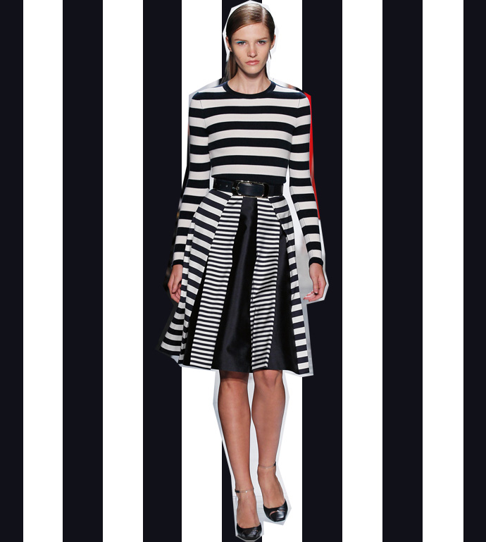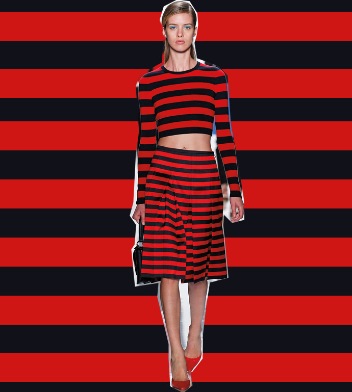1. "Смелая полоска — вязаный топ или юбка. Новинка этого года — широкая контрастная полоса (например, чередование черных и белых полос)".