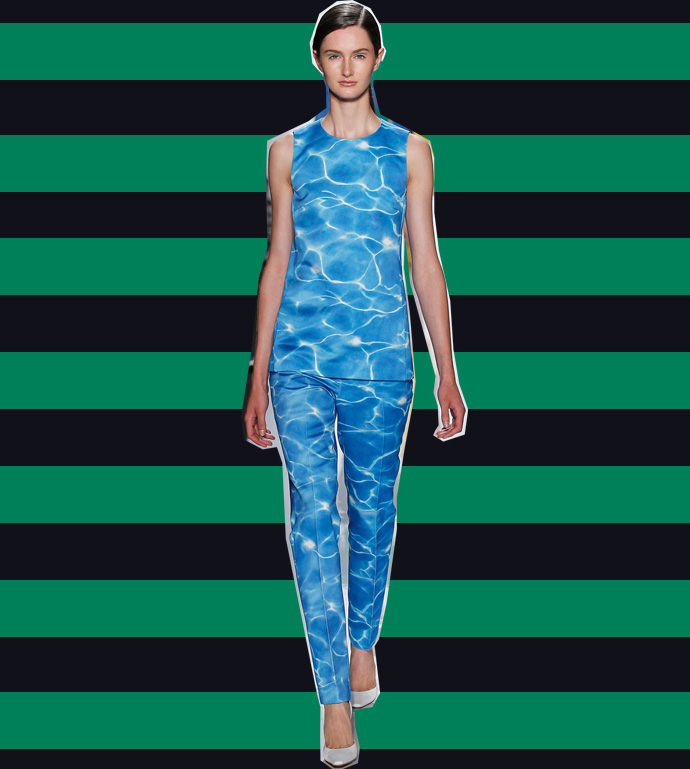 8. "Брюки и топ с фотопринтом. В нашей коллекции есть комплект с изображением воды — голубой и прозрачной, как в бассейне".