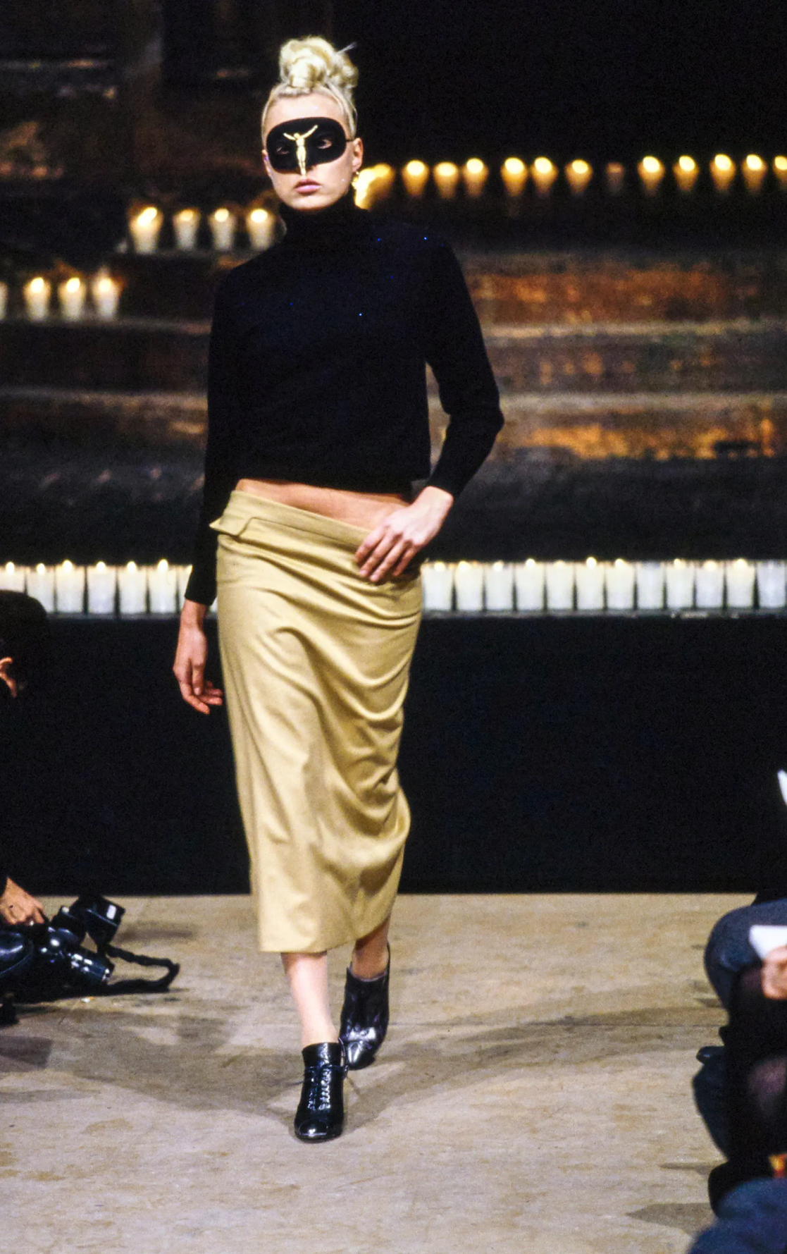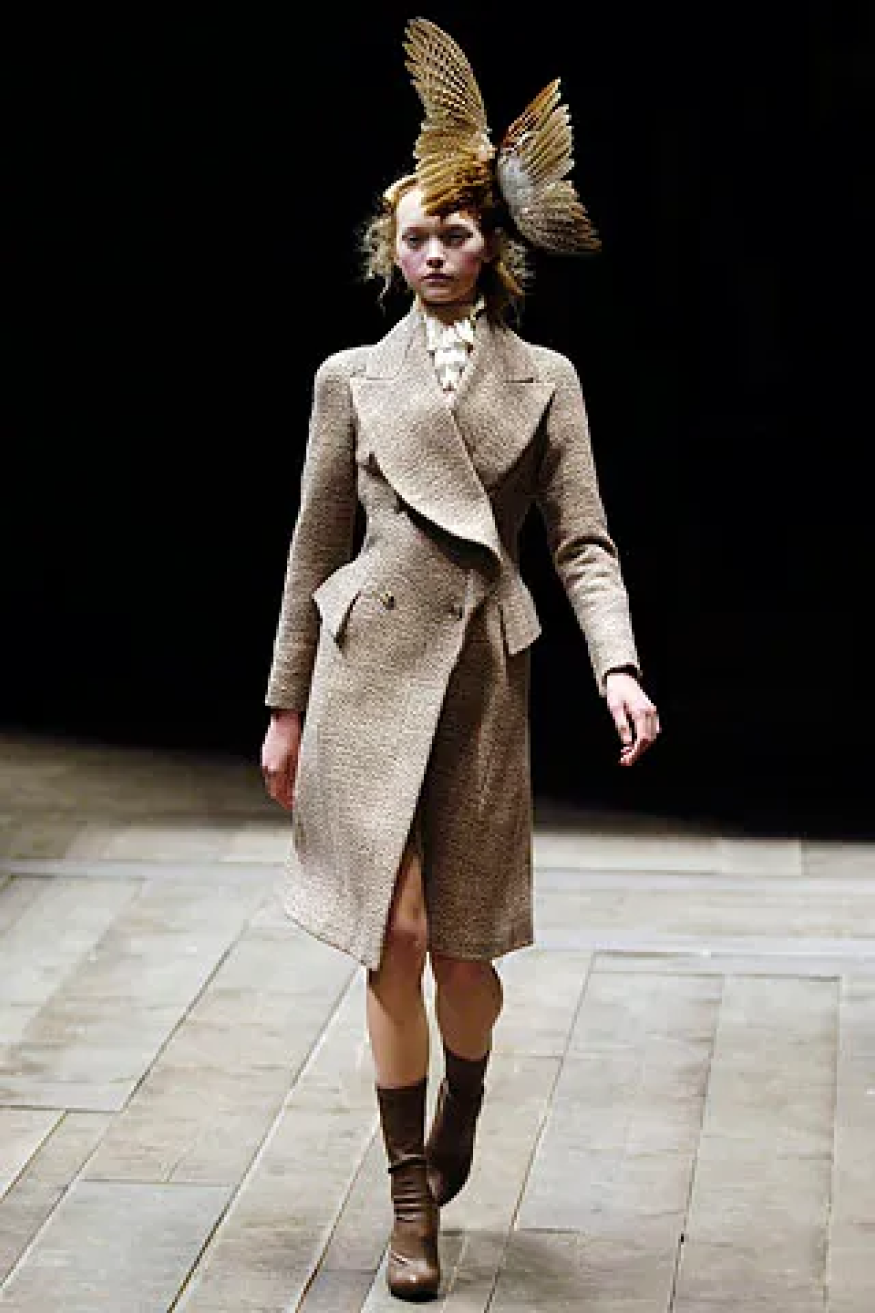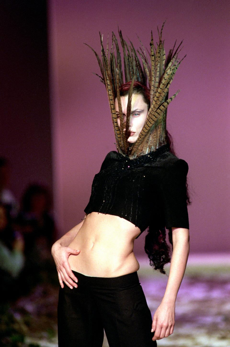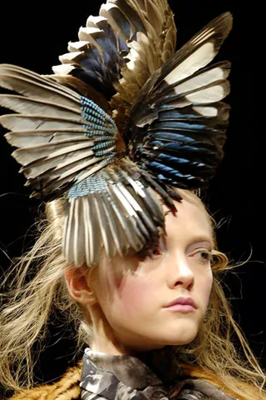 Одно из ранних и драматичных высказываний — коллекция «Данте», собранная из викторианского стиля, корсетов XVIII века, ставших культовыми брюк-бамстеров, кружев, головных уборов с рогами животных и масок с изображением Иисуса. Их, к слову, придумал дизайнер аксессуаров Сэмюэл Костин (если постараться, маску можно найти в винтажных магазинах). Шоу Маккуин провел в Церкви Христа в районе Спиталфилдс (по слухам, ее построил тайный сатанист), возведя подиум в форме распятия. WWD после показа назвали Александра спасителем лондонской Недели моды.