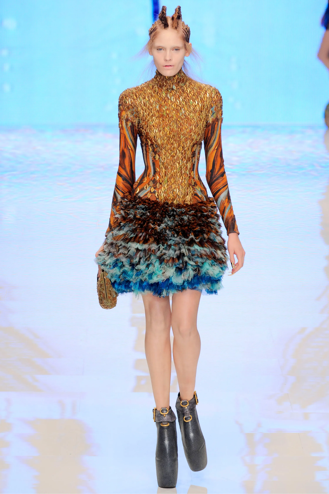 Последняя прижизненная коллекция Маккуина, показанная осенью 2009 года. В феврале 2010-го он уйдет из жизни — спустя неделю после смерти матери, Джой, с которой был невероятно близок и которую любил сильнее всех. В «Атлантиде Платона» дизайнер покажет на одном подиуме инопланетных существ и рептилий, сумев переобуть их в те самые туфли-броненосцы и убедив нас (к сожалению, в последний раз) в своем визионерском подходе.
