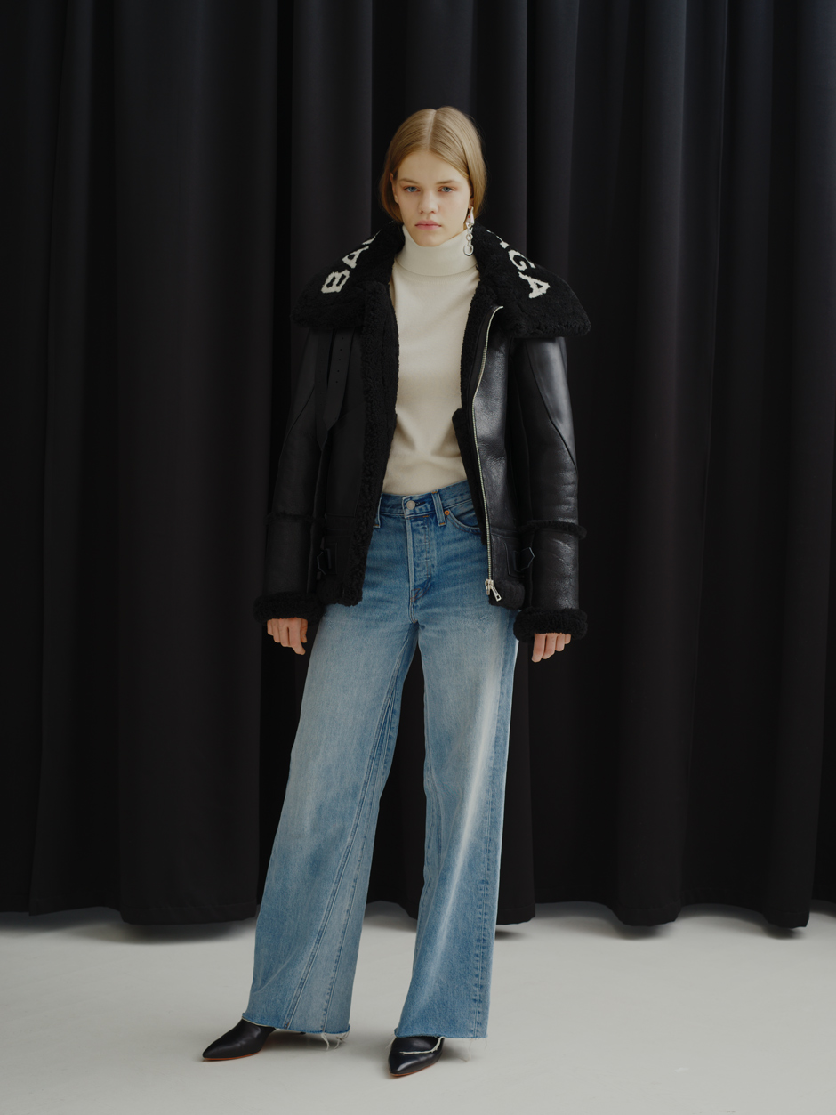 Водолазка с кожаной дубленкой и джинсами — сочетание простое, как все гениальное. С этими вещами в арсенале можно гарантированно пережить зиму. Стоит присмотреться к водолазке белого или кремового оттенков — она создаст выгодный контраст с черной дубленкой и освежит образ. Джинсы в таком случае лучше выбрать насыщенного голубого оттенка с легкой потертостью, а в качестве обуви — остроносые ботильоны.