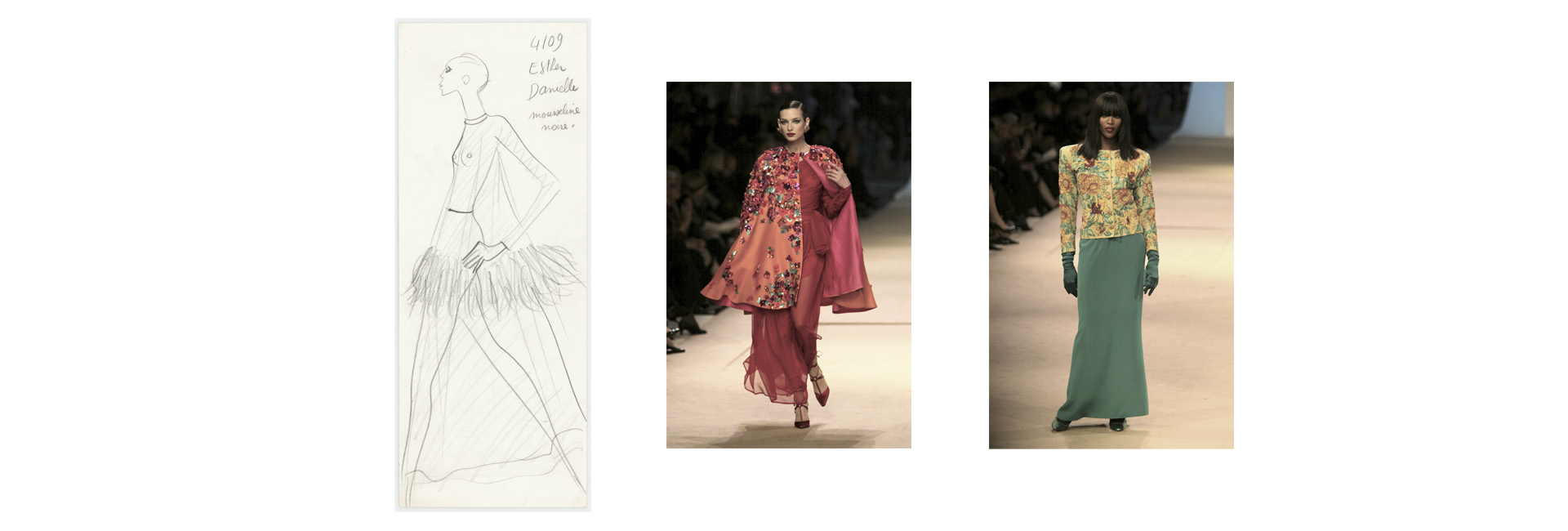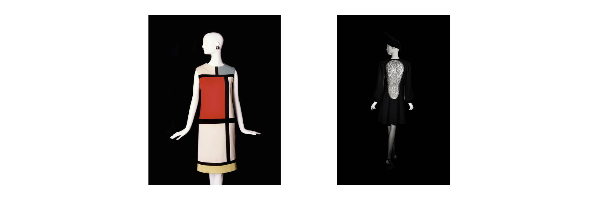 Винтажные работы Сен-Лорана представлены на минималистичном черном фоне, а наша аудиовизуальная презентация будет оживлять каждый из выставленных нарядов.