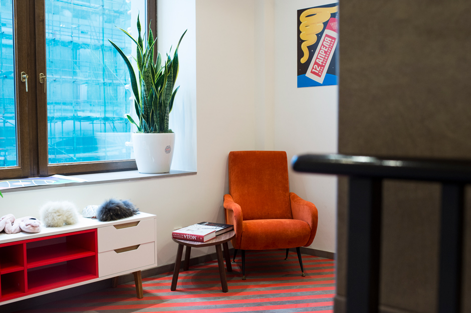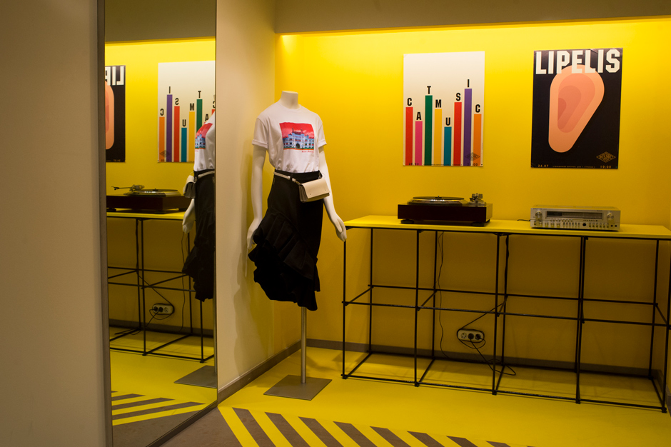 Илья: Раньше площадку занимал магазин Armani. Когда она освободилась, у нас появилась возможность, которой нельзя было не воспользоваться. Сначала заниматься проектом пригласили Марусю и меня, а мы сразу позвали свою команду. В итоге концепцию развивало наше творческое объединение Esthetic Joys, наше агентство и друзья, дизайнеры, архитекторы, художники. Участие в проекте принимало архитектурное бюро под названием Logic и Андрей Яншин, с которы мы работали над Bosco Fresh Fest. Времени у нас было мало, и мы сделали магазин за месяц и две недели. Мы не могли вволю заниматься творчеством, но нам хватило той креативной энергии, которая копилась до этого и просто хранилась в наших головах. Так, прямо на месте у нас с Андреем родилась идея с чистым полотном и тремя основными цветами — красным, синим и желтым — спектром, с которого берут начало все цвета. На это, безусловно, повлияло супрематическое наследие.