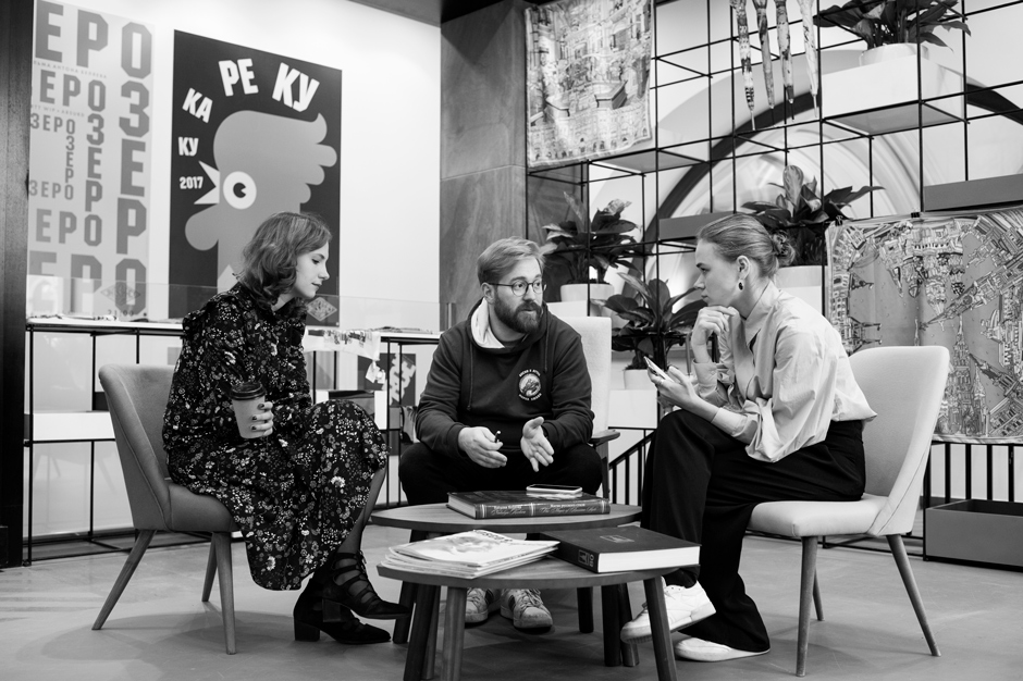 Илья: Наша главная задача — заинтересовать, но интерес должен развиваться самостоятельно. Важно донести, что вдобавок к балалайке можно купить открытку с архитектурой Гинзбурга или пальто Outlaw или вещи других брендов, которые у нас представлены.