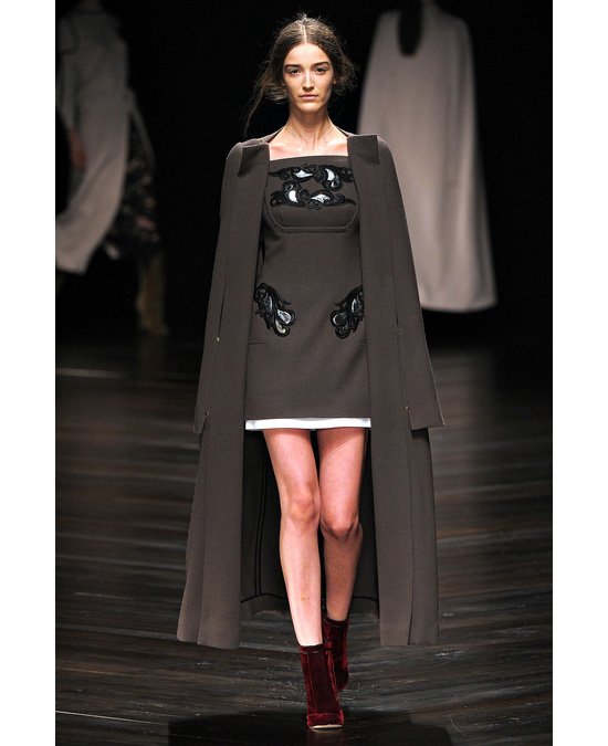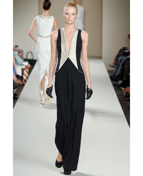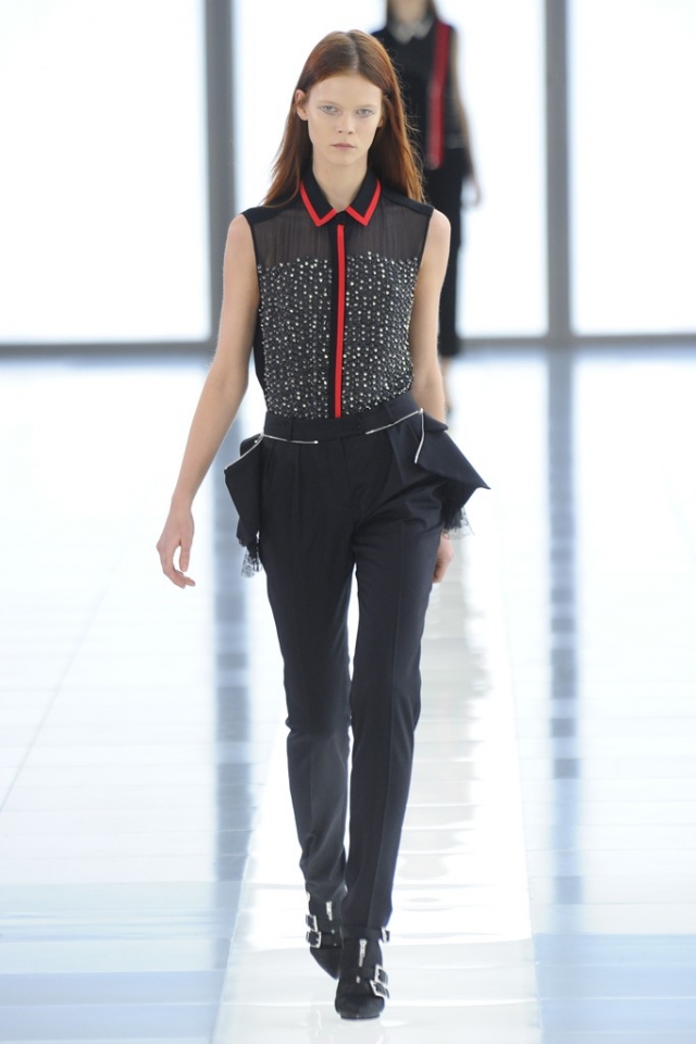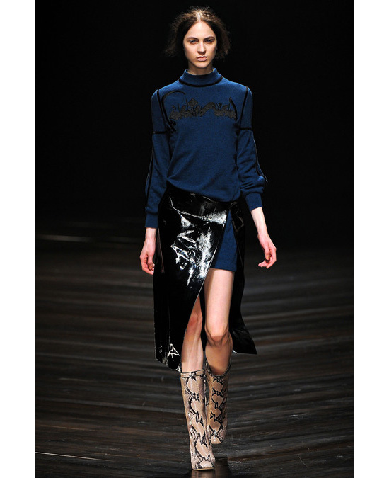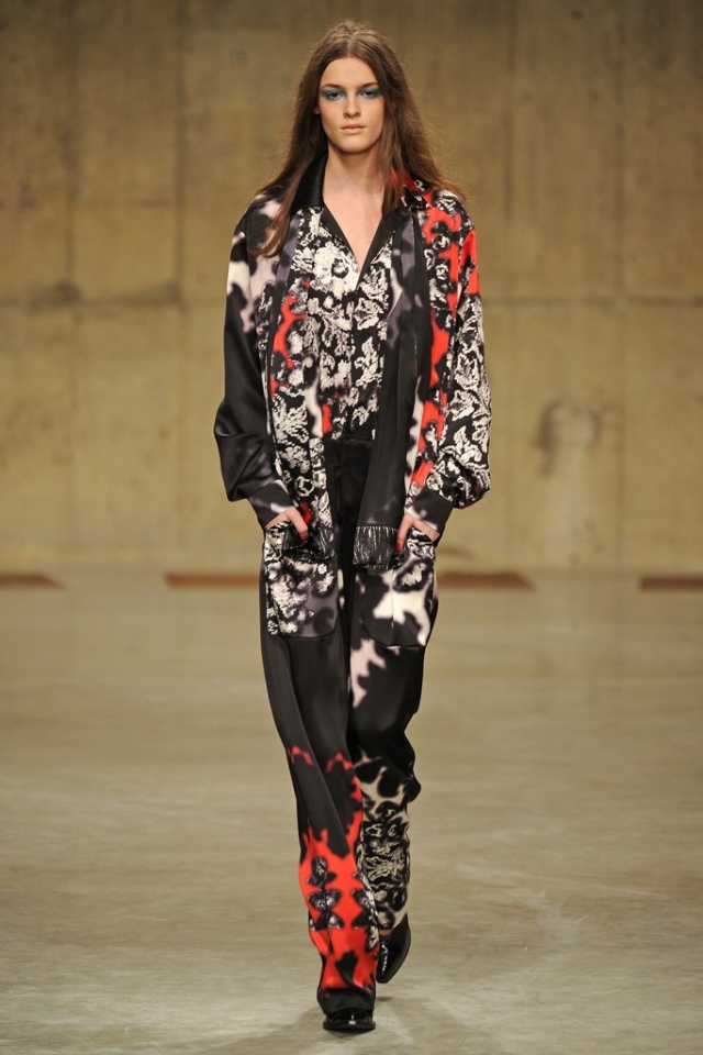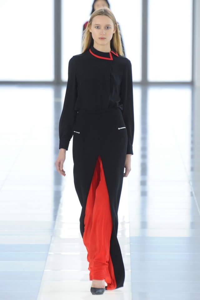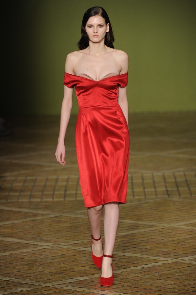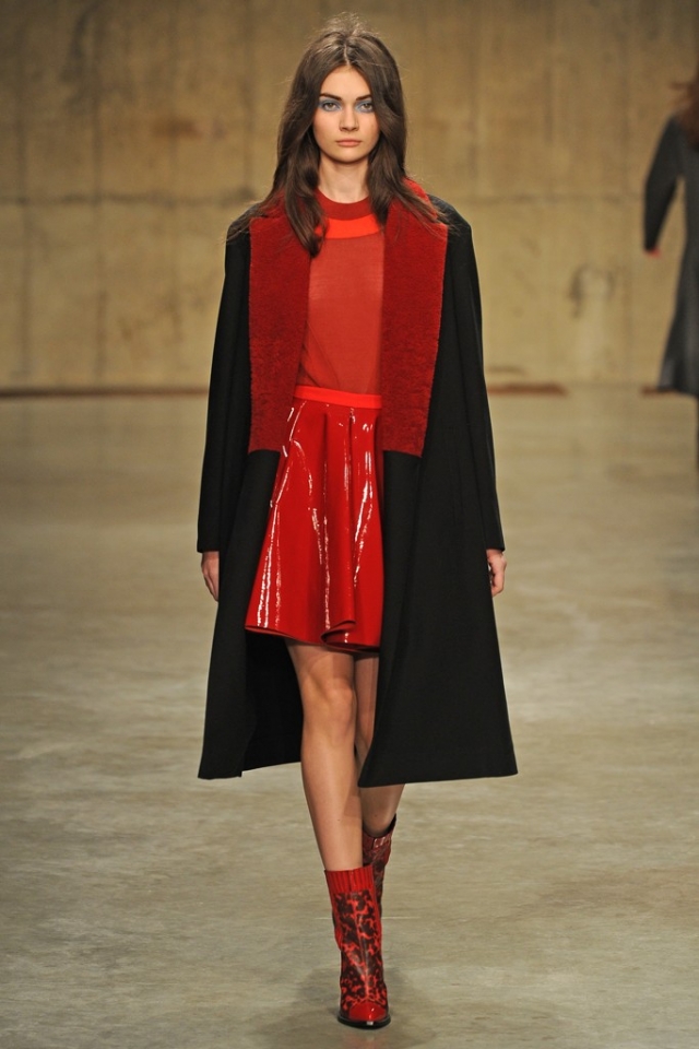 В будущем сезоне Джастин Торнтон и Теа Брегаззи делают ставку на три дизайнерских приема: борьбу противоречий, красно-черную цветовую гамму и молнию как главный украшательный элемент. При этом все получилось очень концептуально и продуманно: борьба проходила между мужским и женским, жестким и мягким, радикально-новым и привычно-классическим, каждый из цветов символизировал воюющие элементы, а молнии — места столкновений. Вылилось все это в единство противоположностей: мужские брюки с баской из молний, жакет с острыми плечами и юбка с соблазняющим высоким разрезом, платье с V-образным вырезом, доходящим почти до пупка. "Все сработало как сочетание плохого вкуса с хорошим", — так отозвались о коллекции на WWD.