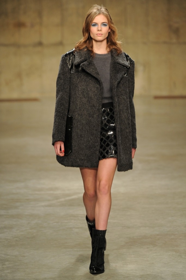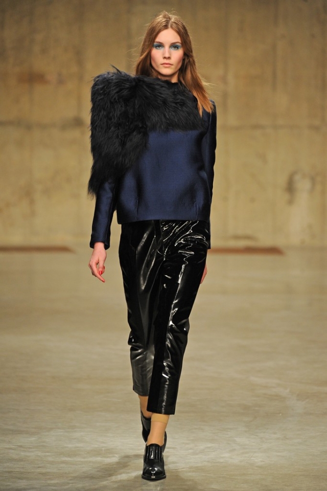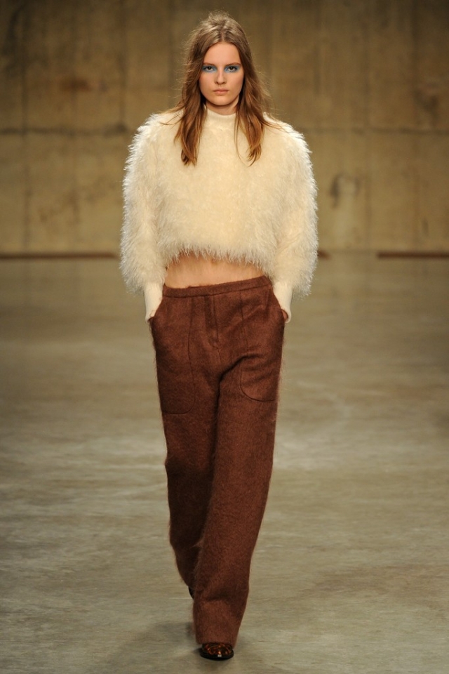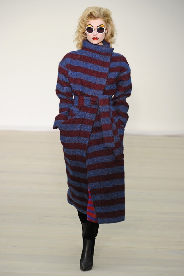 По словам креативного директора Topshop Unique, чей показ транслировался вчера на сайтах TopShop и Google, вдохновение для создания новой коллекции пришло из большого города. "Для ретейлера такого масштаба, — пишут в Vogue US, — это означало превращение жакета из овчины в пальто oversize, переработку одежды мусорщика в тяжелый сатин, а обои из старой пивной — в винтажный цветочный принт на юбках-солнце". В коллекции оказалось много укороченных топов и джемперов, прямых пальто, кожаных юбок и принтованных блуз, чья строгость была разбавлена яркими сумками с мехом и разноцветными ботильонами.