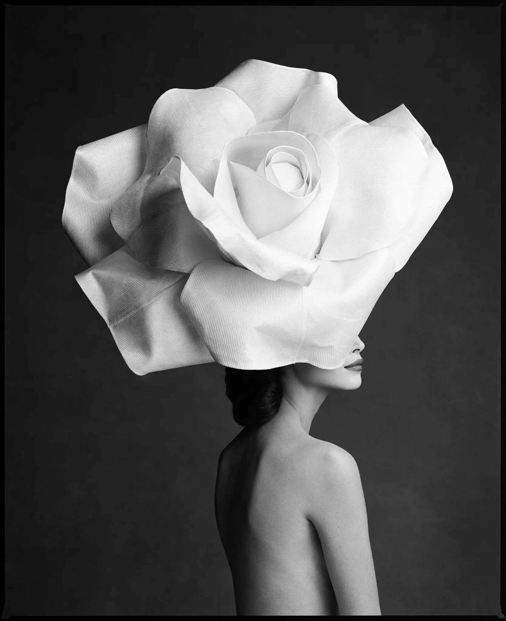 Узнаваемый кадр — черно-белый снимок Кристи Тарлингтон в шляпе с объемной розой. Впоследствии фото станет визитной карточкой Демаршелье.