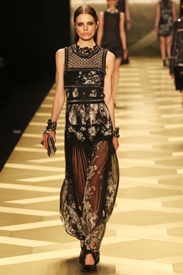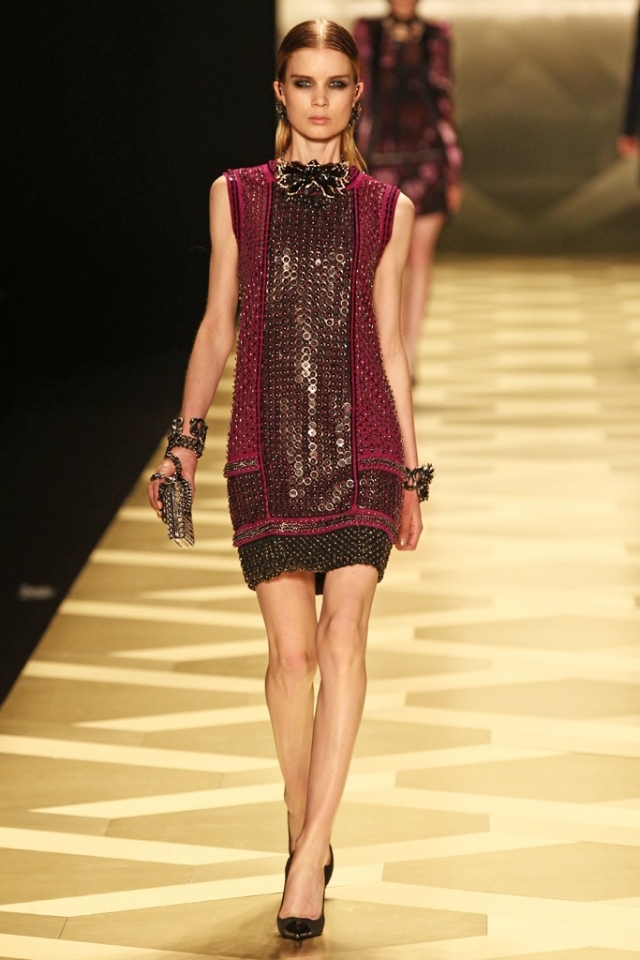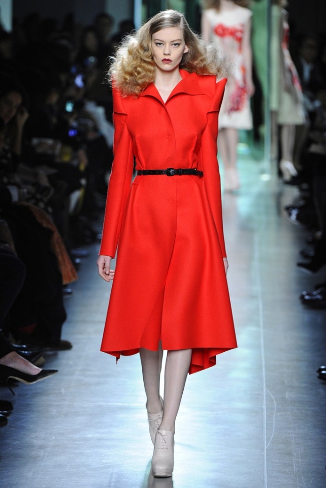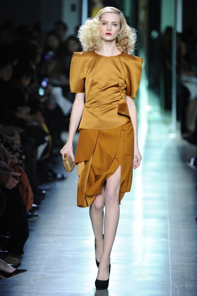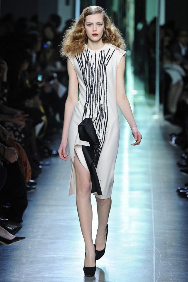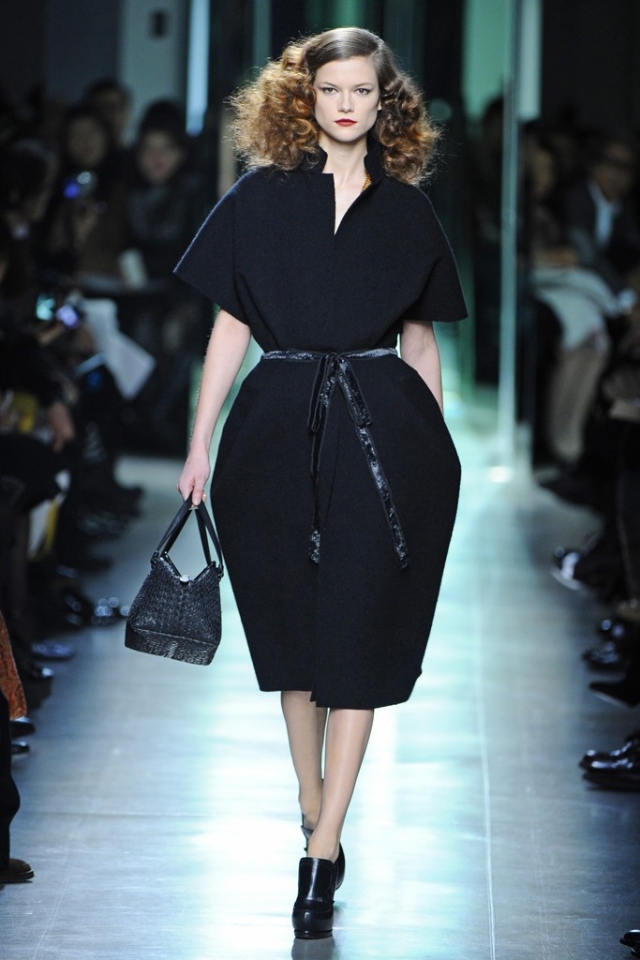 "Дела в доме Bottega Veneta сейчас идут хорошо: прибыль в 2012 году преодолела отметку в $1 млрд, и прекрасная осенне-зимняя коллекция Томаса Майера даст продажам еще больший толчок", — так начали рецензию на Women's Wear Daily. И правда, коллекция получилась красивой, в духе обожаемых дизайнерами 40-х. Яркие пальто с четкой линией плеч и выделенной талией, женственные платья-футляры, шелковые топы и брюки с высокой талией показывали модели с прическами в стиле 70-х — пушистыми кудрями, уложенными на косой пробор. Сильной стороной коллекции была архитектурность кроя, которой Майер добился благодаря умелому использованию тканей, наслоению фланели и шерсти на талии юбок и плечи жакетов. В этой структурности образов и было то "чувство контроля", которым запомнилась его коллекция.