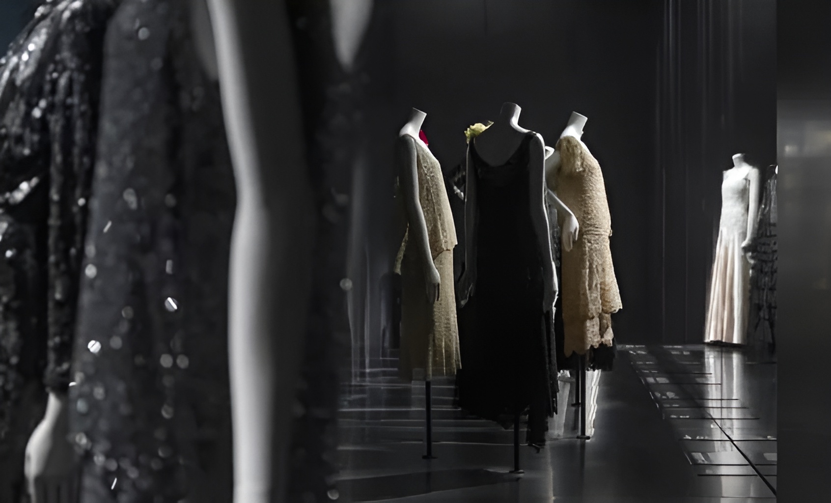 Дьявол кроется в мелочах: на выставке можно в деталях рассмотреть, как в доме Chanel работали с тончайшим шелком, геометричными декорациями срезов изделий и их обработкой — большая часть придуманных тогда технологий была запатентована и применяется до сих пор, хоть и не так часто. Декоративные края твидовых жакетов, подгон и стыковка рисунка ткани — уже невероятная любовь и дотошность из разряда фантастики и сегодня поражают своей продуманностью и функционалом. Хотя, казалось бы, технологии и процессы ушли далеко вперед.