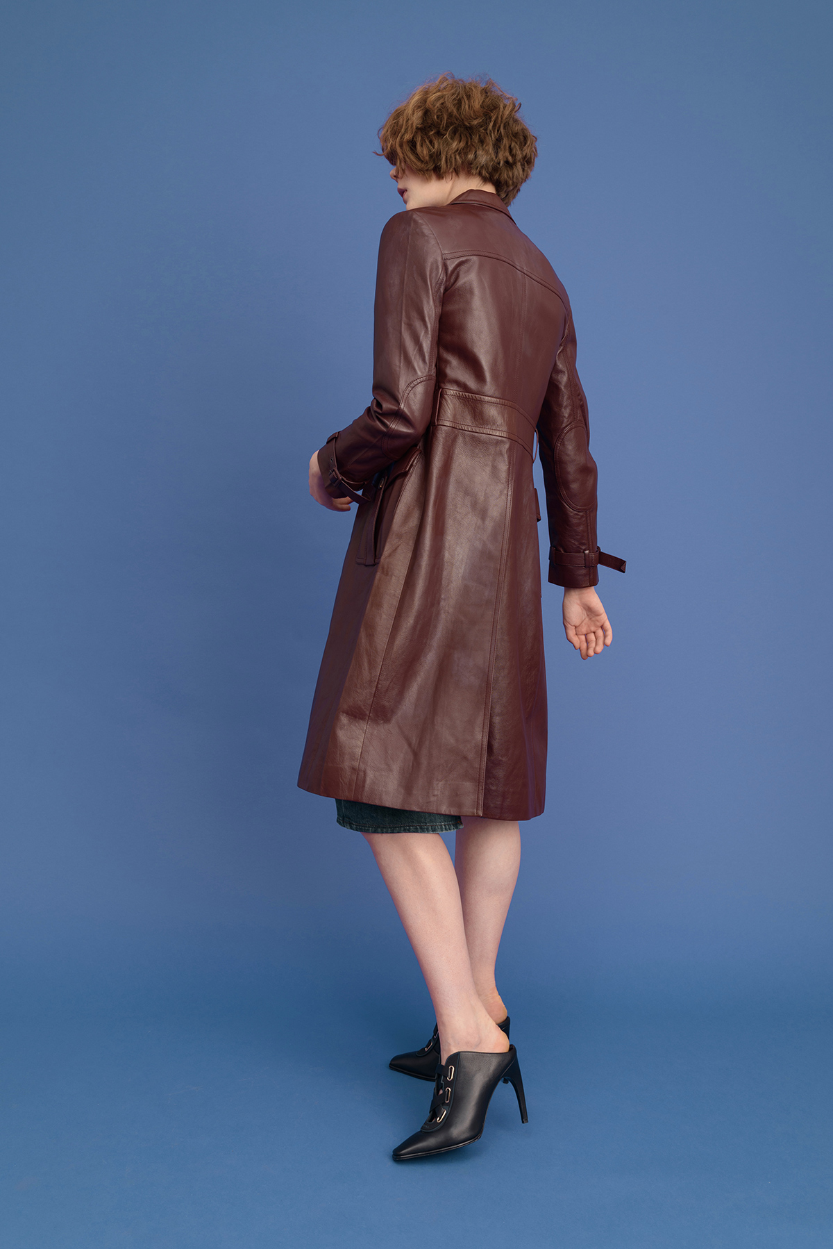 Коричневый кожаный плащ станет, с одной стороны, иронией в сторону прошлого, а с другой — самой модной вещью эпохи постмодернизма. Его стоит носить с джинсовой юбкой и ботильонами на остром каблуке.