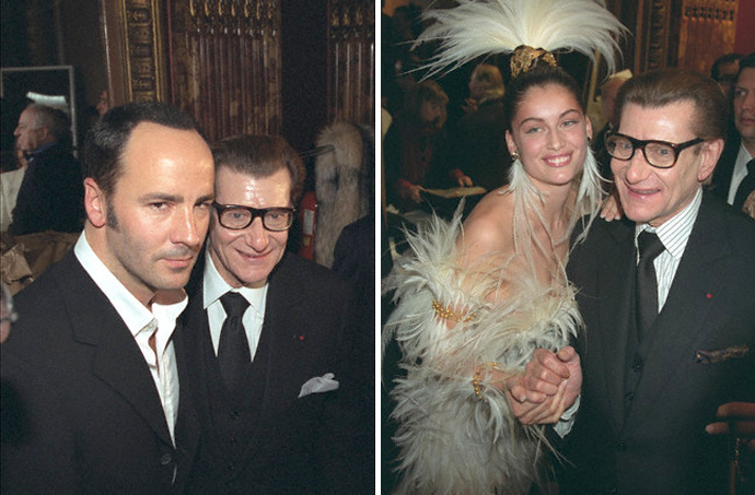 Том Форд, Ив Сен Лоран и Летиция Каста на показе Yves Saint Laurent весна-лето 2000