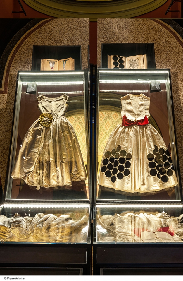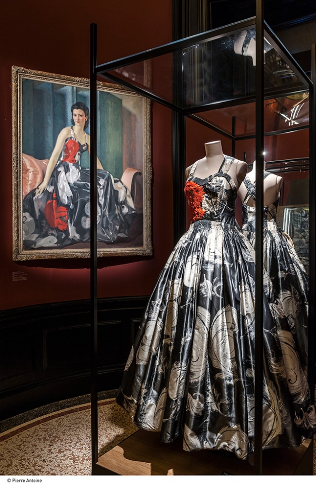 Жанна Ланвен умерла сразу после войны, в 1946 году, и на выставке собраны 110 вещей, сделанных в доме Lanvin под ее руководством: часть из фондов самого музея, часть из фондов дома Lanvin. Пять роскошных неоклассических залов Palais Galliera организованы с помощью сложной системы зеркальных витрин. Все отражается во всем, и это создает головокружительный эффект, причем иногда в прямом смысле слова: некоторые посетители опасливо подходят к очередной группе платьев, вытянув вперед руку. Дело в том, что отдельные витрины открыты иногда с одной, иногда с двух, а иногда даже с трех сторон, и не всегда можно понять, где стекло, где отражение, а где настоящее платье.