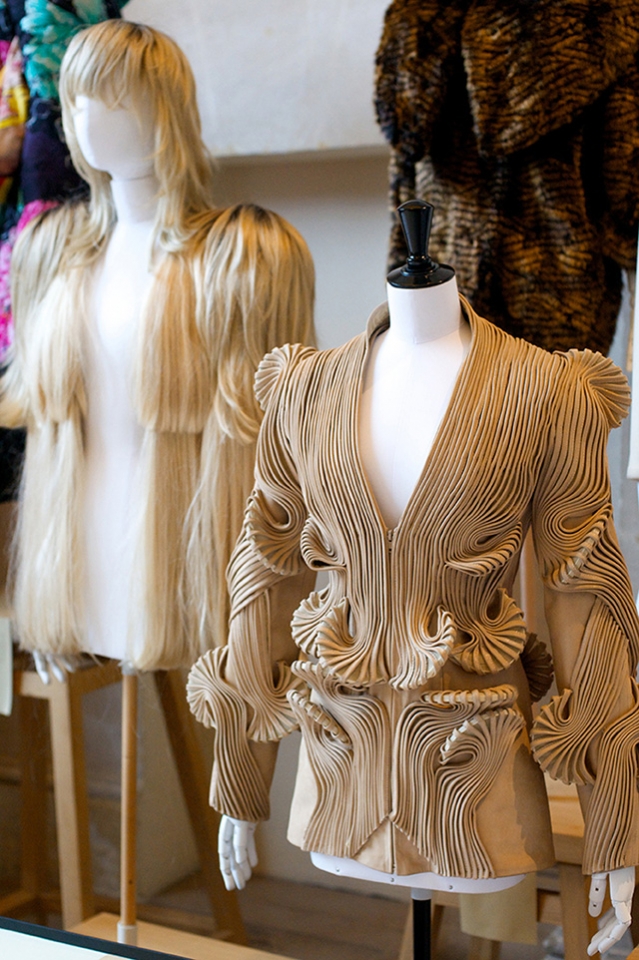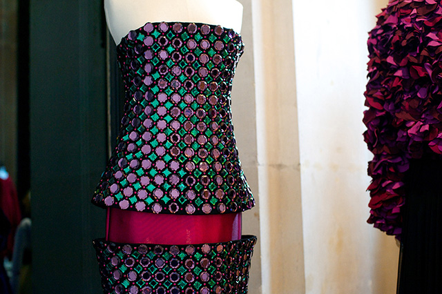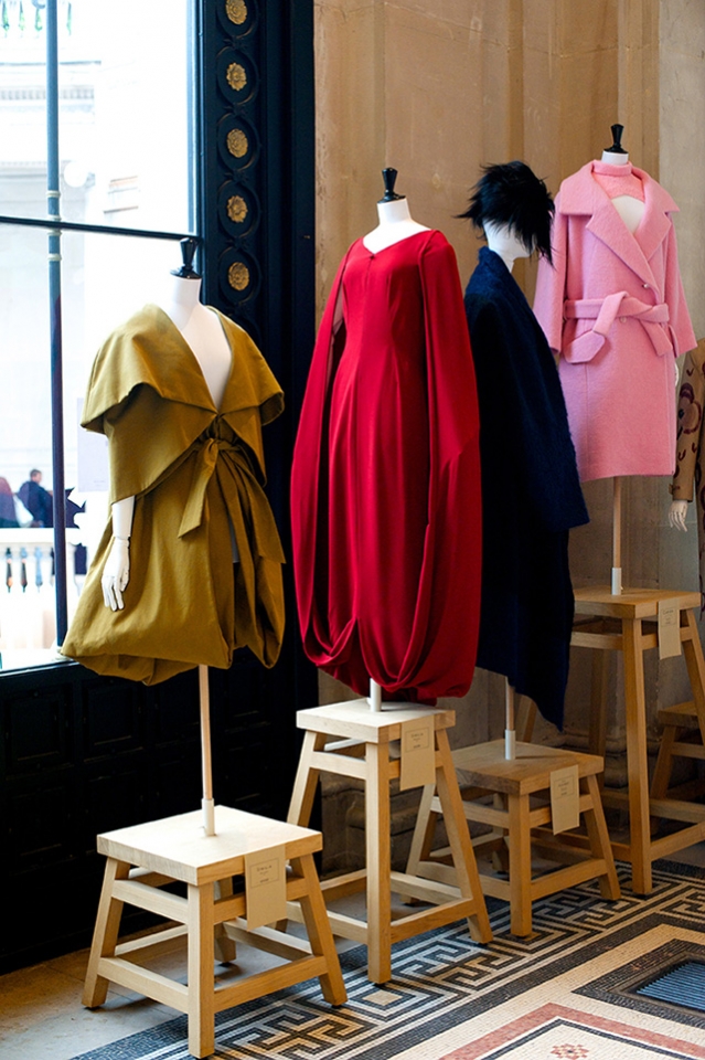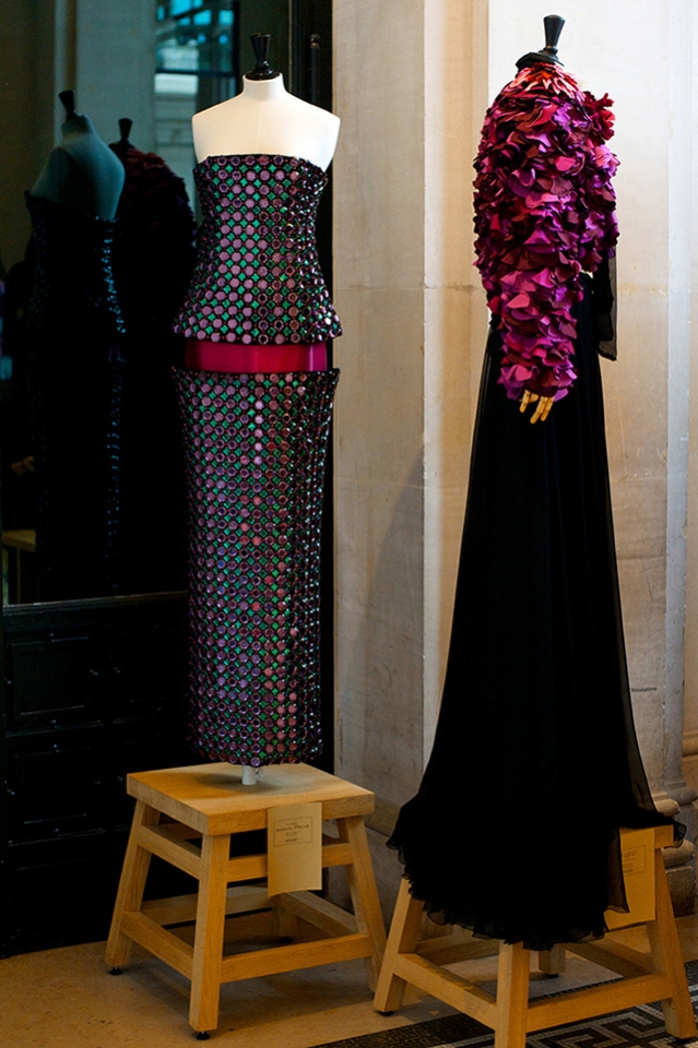 Пробраться ко входу в Palais Galliera, лавируя по скользким от постоянных дождей дорожкам, непросто. Внутри носятся официанты и организаторы с рациями, рабочие строят сцену, другие делают навес над задним двориком, где будут стоять столы. А в небольшом помещении с высокими потолками и окнами (возможно, раньше там был зимний сад) уже стоят манекены с уникальными нарядами. Их совсем немного, около тридцати, но каждый из них стоит тысячи подобных. Повсюду висят таблички "Не прикасаться!", а сотрудники еле дышат, когда открывают коробки, разворачивают пергаментную бумагу и осторожно, в специальных белых перчатках достают экспонаты. Эта выставка организована специально для гостей ужина Vogue Paris Fashion Fund, и рядовые посетители не смогут ее увидеть. Несколько вещей для нее дизайнеры передали Palais Galliera сами, но основную часть купил директор музея Оливье Сайяр. Он использовал деньги, которые фонд Vogue успел собрать с февраля. Ужин — дополнительный инструмент для привлечения инвесторов. В этом году он прошел впервые, но обязательно станет ежегодным, и каждый раз организаторы планируют выручать около ста тысяч долларов.