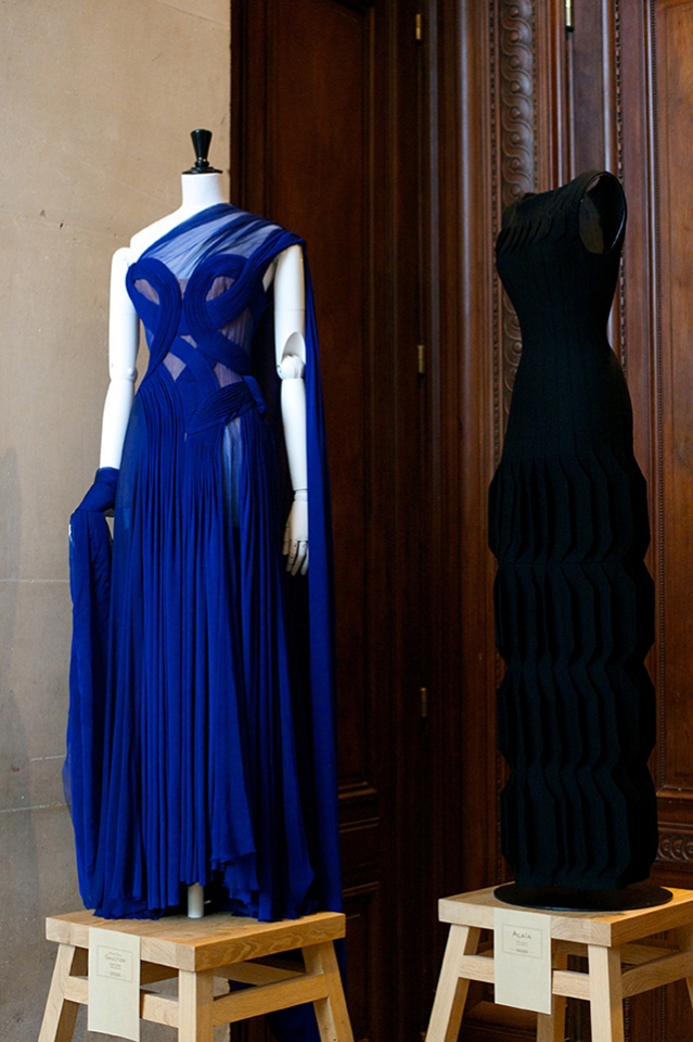 О, это сложно. Но я думаю, что это платье Jean Paul Gaultier, которое дизайнер дал нам для экспозиции. Оно очень особенное. Готье посвятил его мадам Гре, великому кутюрье прошлого. Это одновременно и Готье, и мадам Гре, которая вдохновляет дизайнеров по сей день. Причем оно не из линии haute couture.