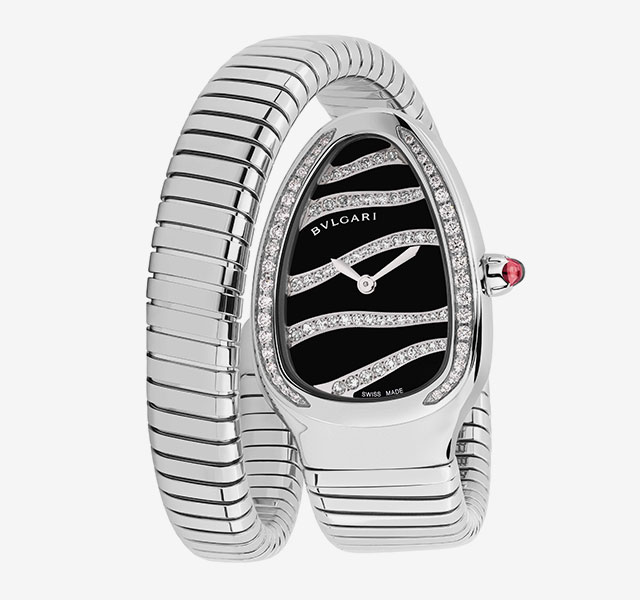 Или другой хит всех времен и народов — часы Serpenti. «Они появились в 40-х, — говорит Фабрицио Буонамасса, — и сейчас есть самые разные Serpenti. Нам нравится играть с различными материалами — золото, керамика, — мы были первыми, кто использовал в ювелирных часах фарфор, сталь, каучук. Это часть нашего ДНК. И я думаю, это прекрасный диалог между наследием и современным объектом. Serpenti современны и вневременны».