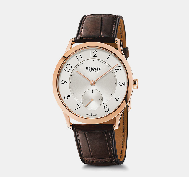 Hermès впервые за 20 лет выпустили совершенно новые часы, ультратонкие, что сейчас крайне актуально, в новом дизайне с новым in-house-калибром H1950 (ультратонкий автоматический механизм с микроротором). Общий дизайн разработал креативный директор La Montre Hermès Филипп Делоталь, а собственно цифры на циферблате — графический дизайнер Филипп Апелуаг. Максимальный диаметр — 39,5 мм. Что можно сказать про дизайн Hermès? То же, что и всегда, — он идеален. Совершенные в своей рафинированной простоте цифры, чистое пространство циферблата, графичные классические линии корпуса. Ни убавить, ни прибавить, и при этом каждый штрих каждой цифры абсолютно узнаваемый, как умеют только Hermès.