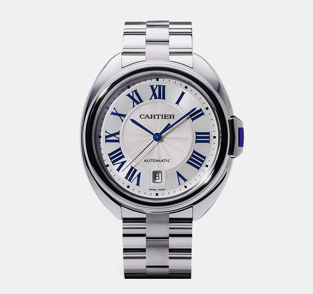Дом Cartier выпустил абсолютно новые часы, с новым механизмом, что само по себе уже праздник. Cartier к тому же не делают тут жестких гендерных акцентов. Вот, например, такие Clé — в белом золотом корпусе с таким же браслетом, с синими часовыми метками и такой же синей заводной головкой — легко могут носить и парни, и девушки. В заводной головке тут, кстати, все дело: именно она дала название всей линии. Она не просто крутится — она поворачивается как ключ в замке (сlé — «ключ» по-французски), когда вы выставляете время или заводите часы. В последнем, впрочем, нет особой надобности, если носить часы регулярно: механизм тут автоматический, и все происходит само. Диаметр — те самые 40 мм. У новых часов Cartier отточенно модный дизайн мечты, какой Cartier отлично умеют делать. И они чрезвычайно хороши со всем на свете: от непременных джинсов до коктейльного платья. С последним особенно.