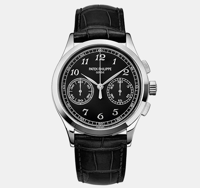 Ну и штука из мира бескомпромиссной роскоши — обновленный хронограф Patek Philippe. Новый циферблат — эбонитовый черный цвет, цифры в стиле Breguet из белого золота. Из него же и сам корпус с отличным диаметром 39,4 мм. В сущности, к этим техническим характеристикам в сочетании с названием мануфактуры можно вообще ничего больше не добавлять. Разве только, что Patek Philippe исполнилось в этом году 175 лет. Ну и еще то, что эти часы вечны и безупречны.