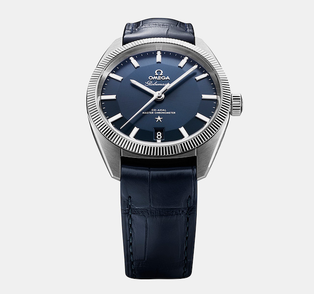 Дизайнерская: новые модели изящно соотносятся с легендарными часами Constellation 1952 года. У них такое же плоское стекло, напоминающее сковородку для блинов, тот же диаметр 39 мм. Мои любимые — в стальном корпусе с синим сатинированным циферблатом. Футуристический дизайн предкосмической эры в аккуратной современной обработке.