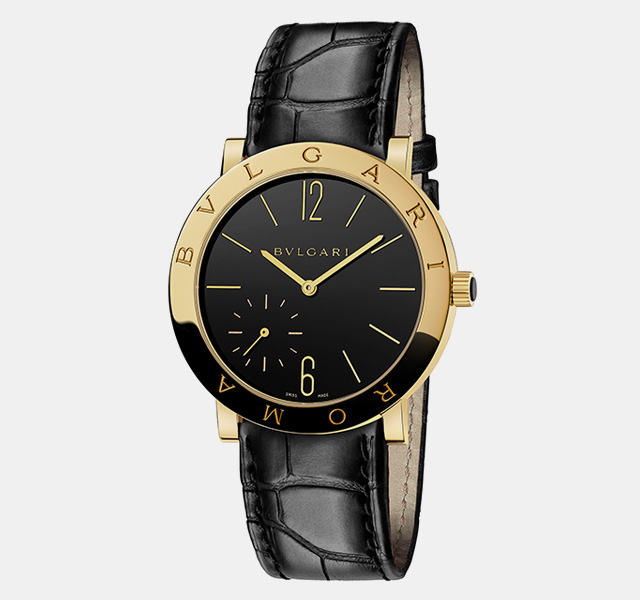 Эти часы были сделаны в 1975-м, в драматическую эпоху великого кварцевого кризиса, когда казалось, что всей великой культуре благородных швейцарских часовых механизмов пришел конец. И вот прошло 40 лет, а Bvlgari Roma (как и вся швейцарская часовая промышленность) живы и здоровы. В честь этой годовщины, Bvlgari показали в Базеле обновленные исторические модели. Среди них часы Bvlgari Roma Finissimo 40th Anniversary — 41-миллиметровый корпус из желтого золота (после многих лет тотального розового, возвращается рафинированное желтое золото), черный лаковый циферблат с маленькой секундной стрелкой, индикатор запаса хода на 65 часов на обратной стороне, калибр BVL128, сделанный на швейцарской мануфактуре Bvlgari. Неоклассический римский дизайн, сильный и яркий. В общем, выразительность и благородство.