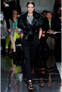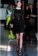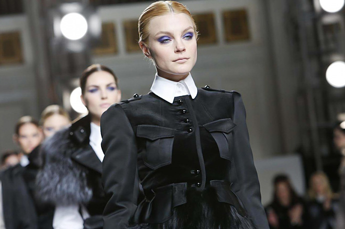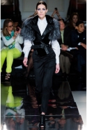 Образ power woman определенно захватил воображение дизайнера – и такие взрослые сильные женщины, как Мишель Обама или героиня его последней рекламной компании Стефани Сеймур только подчеркивают общий БДСМ-флер его последних коллекций. Прозрачные тренчи с кружевными принтами, затянутые талии, широкие плечи, черный мех, черные кожаные корсажи, высокие наглухо застегнутые белые воротники рубашек с прозрачными вставками — все это вкупе с огромной роскошной люстрой над подиумом вновь усиленно внушало нам нечто фрейдистско-двусмысленное.