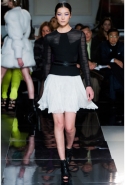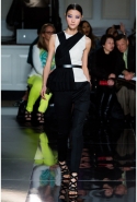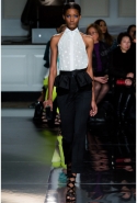 Пять лет назад, слыша имя Джейсона Ву, девушки переспрашивали "Ву кто?", редакторы моды скептически пожимали плечами, а околомодная публика путала его с Александром Вонгом. Но тут Мишель Обама надела платье Джейсона на инаугурационный бал и все тут же запомнили, как его зовут. А потом сделала это во второй раз – аккурат перед показом Jason Wu FW2013, что очень оживило общую атмосферу вокруг его имени. Это красное инаугурационное платье Мишель Обамы появилось вчера на подиуме в виде топа с длинным треном, надетого с черными брюками-капри, и стало одним из немногих цветных пятен, разбавивших строгую черно-белую гамму коллекции. Очевидно, Джейсон Ву по-прежнему находится под сильным впечатлением от монохромных снимков Хельмута Ньютона, чья прошлогодняя парижская выставка вдохновила предыдущую коллекцию Jason Wu.