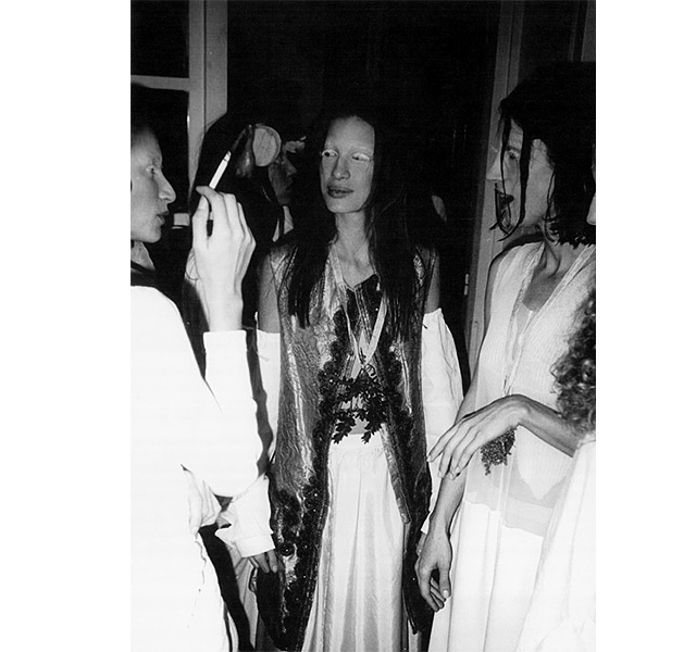 Гальяно же в это время, на этом деконструктивистски-минималистском фоне начинает нечто совершенно противоположное: шьет скроенные по косой платья-комбинации в стиле Мадлен Вионне, свои знаменитые slip dresses, увлеченно роется в архивах, одним из первых использует театрализованный винтаж в своих коллекциях, препарирует историю костюма — эпоха Людовика XVI, Директория, ампир и т. д. При этом его восторженный историзм и бескомпромиссный гламур соединяются с ясностью кроя и простотой силуэта. В 1994 году он устраивает свой знаменитый показ в парижском особняке мультимиллионерши Сао Шлюмберже — 15 черных и 2 розовых выхода, — который перевернул все в парижской высокой моде. Этот показ принес ему встречу с Бернаром Арно и пост артистического директора Christian Dior. В свои ранние гениальные годы в Dior он фактически изобретает новый театрализованный стиль фэшн-шоу и вообще новый способ делать моду, бесконечно тасуя декады XX века. Собственно, страсть к театральности и источила его талант в конце концов, превратив его блестящую эксцентричность в трэш и угар. Что было дальше, мы все знаем.
