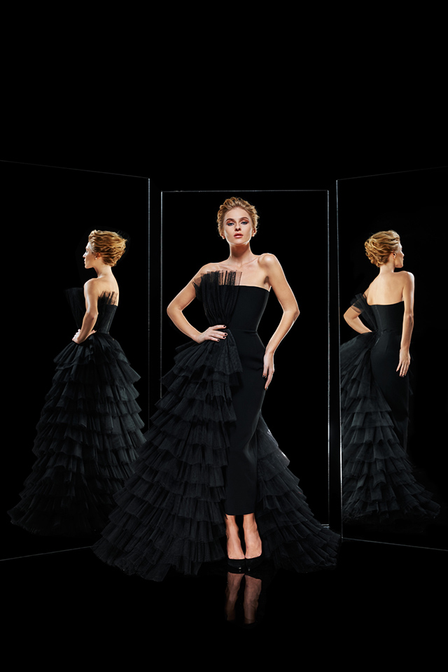 Есть у нас платье-бюстье черное, с многоярусной юбкой. Его даже иногда приходится убирать из шоу-рума, потому что люди, как только приходят, замечают его, набрасываются и уже не хотят ничего другого. Приходится говорить, что его нет, что его не шьют больше, что сейчас мы его не продаем... В каждой коллекции у нас есть своя звезда. А это черное, помимо того что оно очень красивое, эффектное и удобное, просто подходит всем. У него очень удачный фасон, подчеркивающий все достоинства.