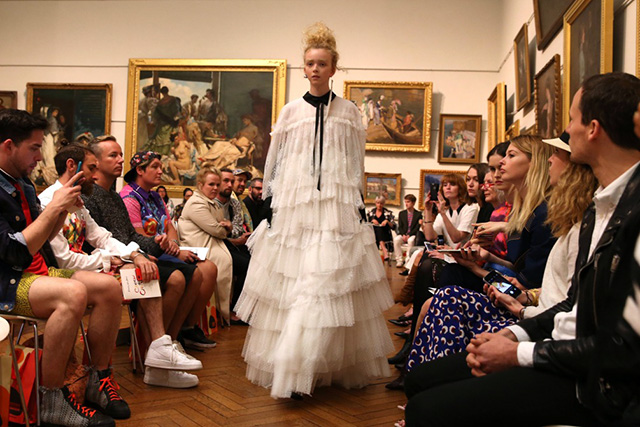 В 8:30 утра я обнаруживаю себя стоящей в очереди на вход в зал: первые шоу начинаются рано, а накануне ночью я почти не спала, так что сейчас только угрюмо говорю самой себе: «Будем надеяться, это того стоит». И совсем скоро узнаю, что мои сомнения были напрасны. Показ австралийского дизайнерского дуэта Romance Was Born оказался самым необычным и альтернативным шоу всей местной недели. Практически каждый предмет был либо расписан вручную, либо сшит из мелких лоскутов, либо покрыт вышивками и принтами: всюду радуги, волшебные камни, птицы, цветы и изображения австралийских пейзажей.