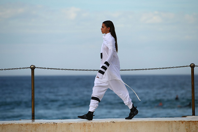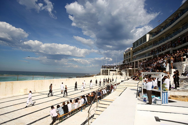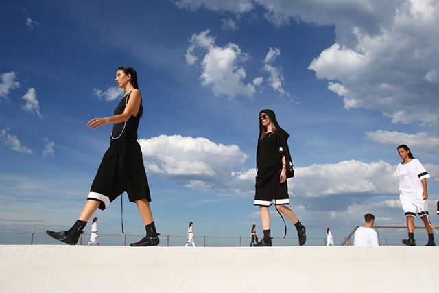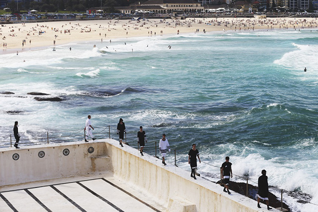 Показ Ten Pieces выпал на самый жаркий день недели, который оказался и последним днем Mercedes-Benz Fashion Week Australia. И стал прекрасным завершением местного сезона показов благодаря невероятно удачной локации: шоу прошло в знаменитом бассейне на пляже Bondi Beach. Картинка сложилась идеальная: яркое солнце, голубые волны, синее небо — в этом вся Австралия.