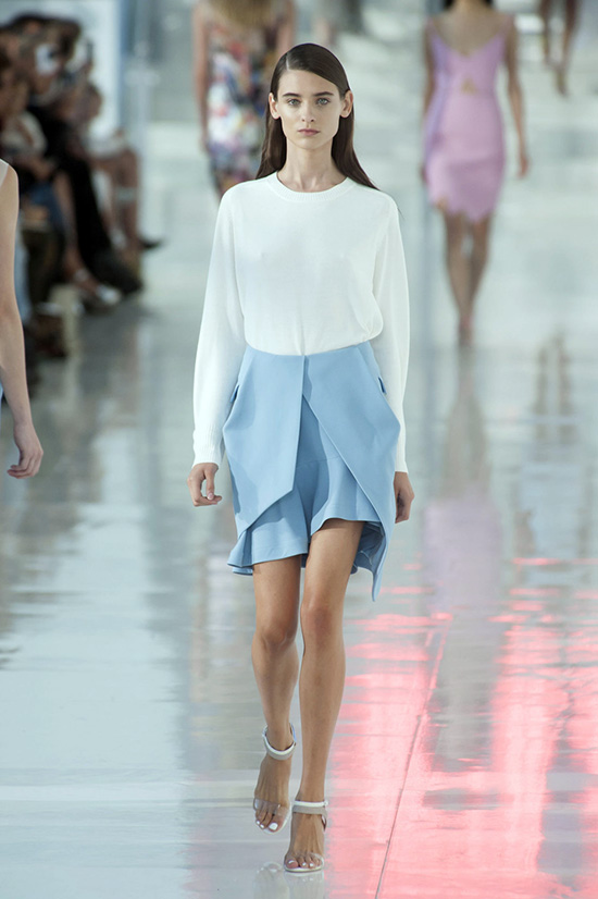 Мнение: "Горе той женщине, которая планирует носить бюстгальтер будущей весной. TopShop Unique не первый показ, утвердивший, что спина — одна из главных эрогенных зон современности, но у них на эту деталь был сделан особый акцент. На показе TopShop было очень много открытых спин". Майя Сингер, Style.com