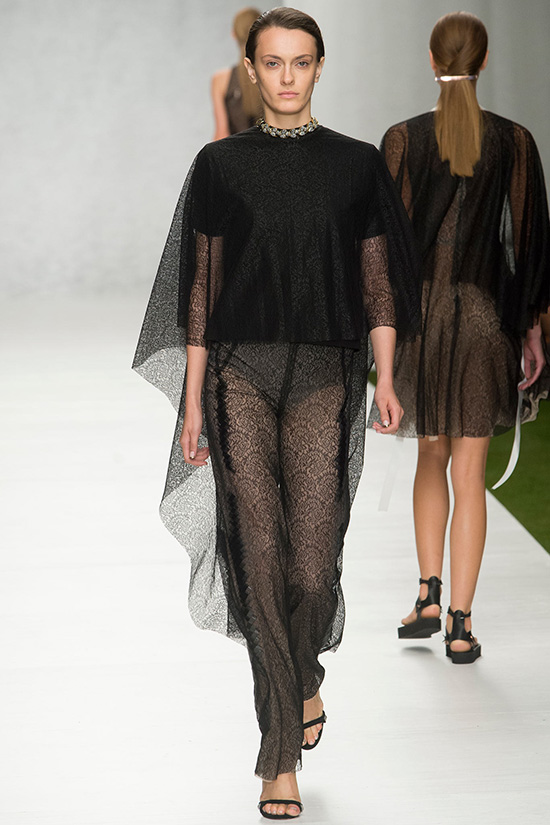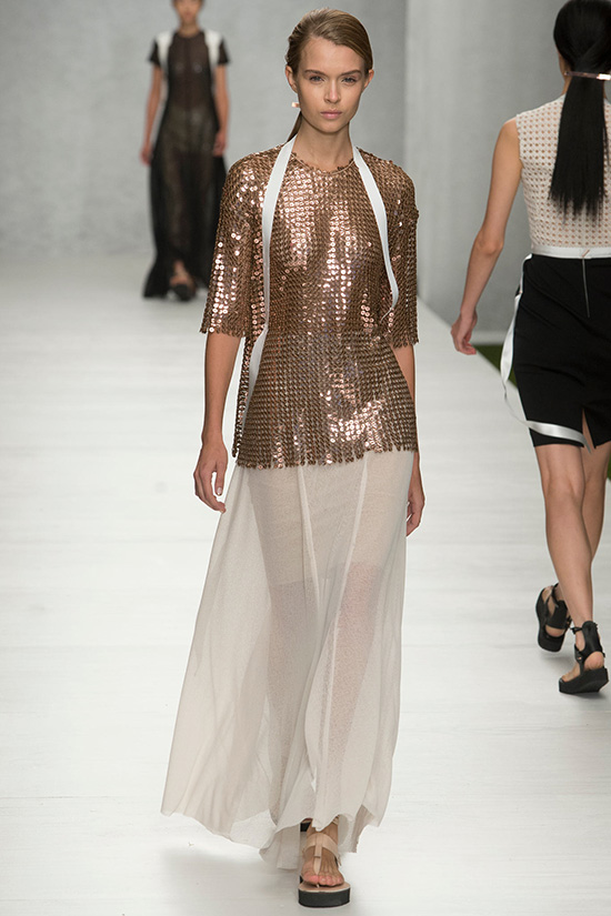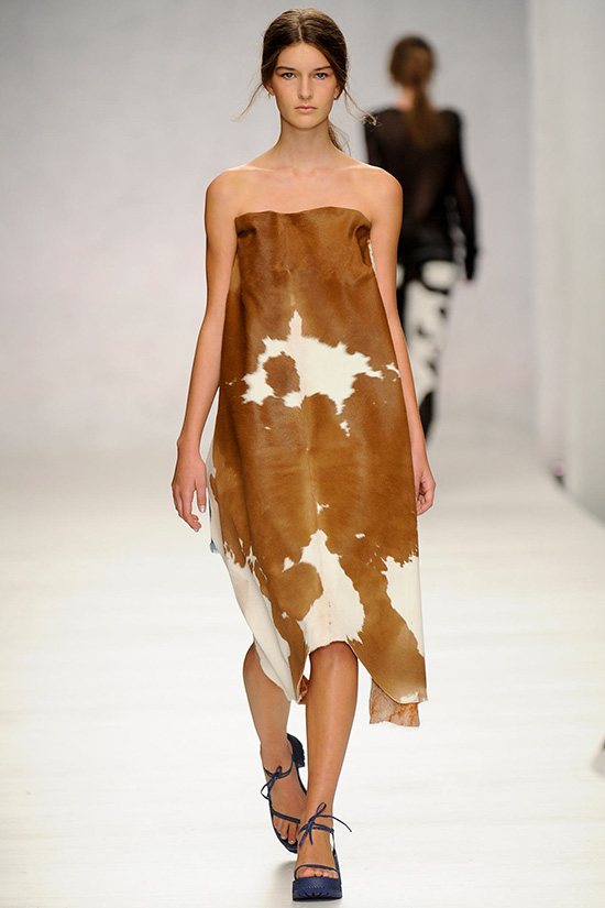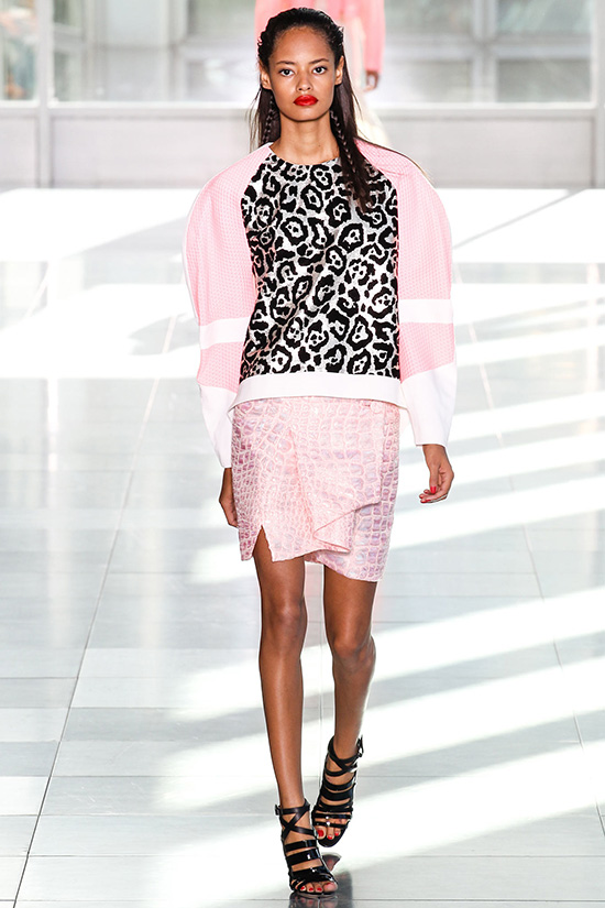 Мнение: "После монастрыского тона прошлой коллекции на смену ему пришел атлетический, и структурные футболки из леопардового жаккарда с плиссированными мини-юбками показались убедительным и даже безупречным дневным образом". Кьома Ннади, Vogue.com