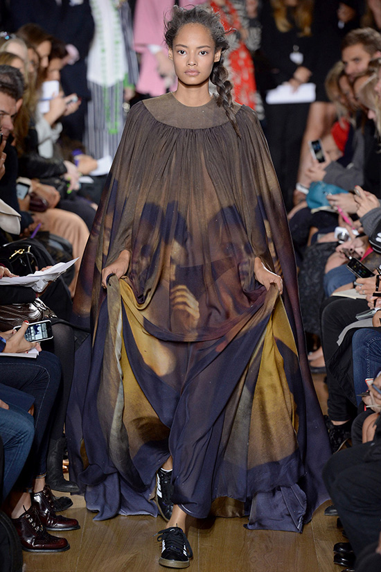 Мнение: "Самыми выдающимися в этом великолепном шоу были темные шелковые платья с изображениями моделей в объективе Глена Лачфорда — Кейт Мосс, Амбер Валетты и Аманды де Кадене". WWD